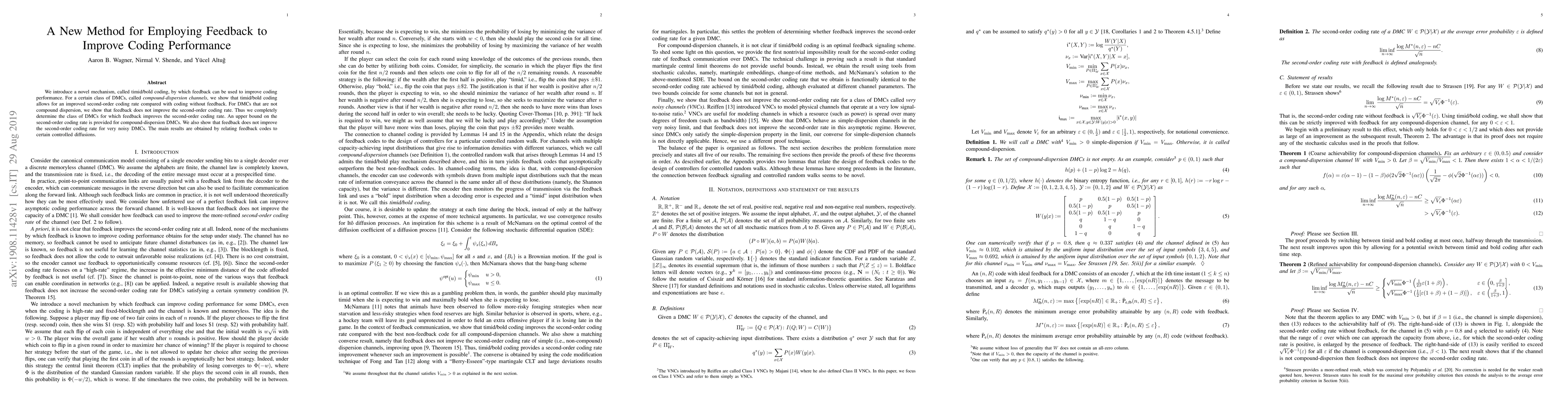 We introduce a novel mechanism, called timid/bold coding, by which feedback can be used to improve coding performance. For a certain class of DMCs, called compound-dispersion channels, we show that timid/bold coding allows for an improved second-order coding rate compared with coding without feedback. For DMCs that are not compound dispersion, we show that feedback does not improve the second-order coding rate. Thus we completely determine the class of DMCs for which feedback improves the second-order coding rate. An upper bound on the second-order coding rate is provided for compound-dispersion DMCs. We also show that feedback does not improve the second-order coding rate for very noisy DMCs. The main results are obtained by relating feedback codes to certain controlled diffusions.