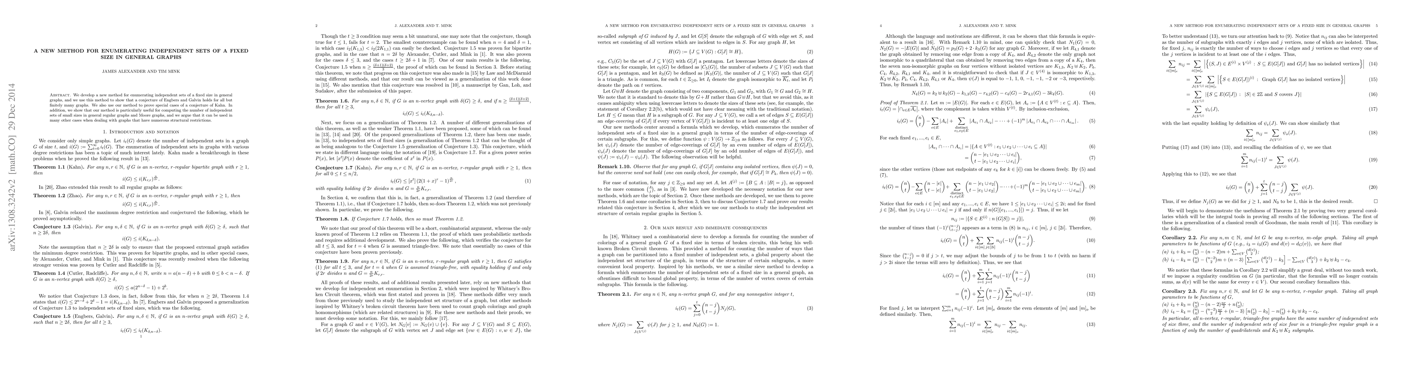 This paper introduces a novel method for counting independent sets of a fixed size in general graphs, demonstrating its application in validating specific cases of conjectures and showing its utility in regular and Moore graphs with structural restrictions.
