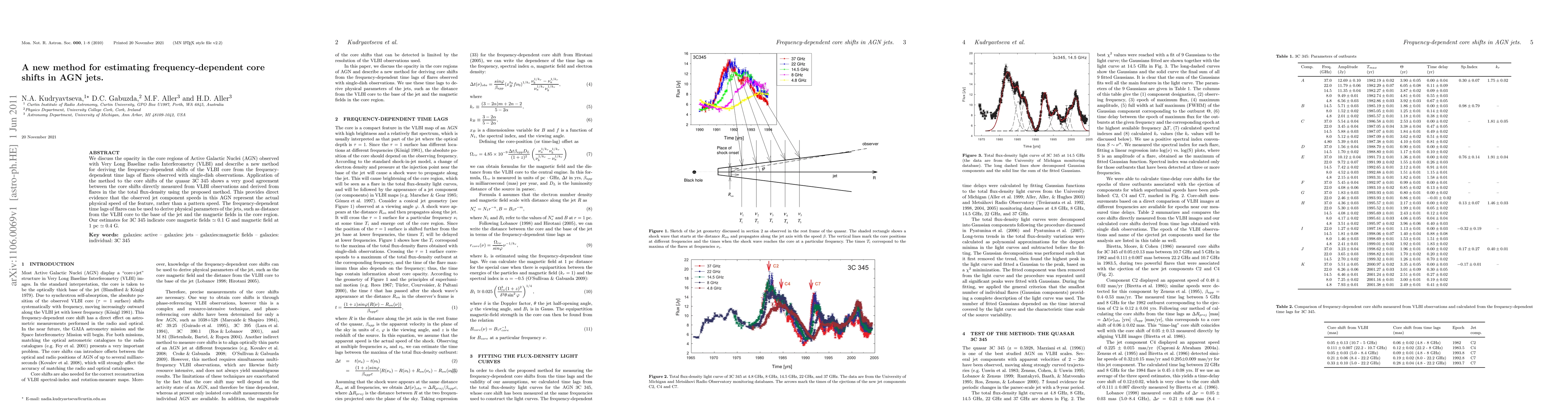This paper introduces a novel method to estimate frequency-dependent core shifts in active galactic nucleus jets using frequency-dependent time lags of flares observed via single-dish and VLBI. The method was successfully applied to quasar 3C 345, yielding core magnetic field estimates of ~0.1 G and ~0.4 G at 1 pc.