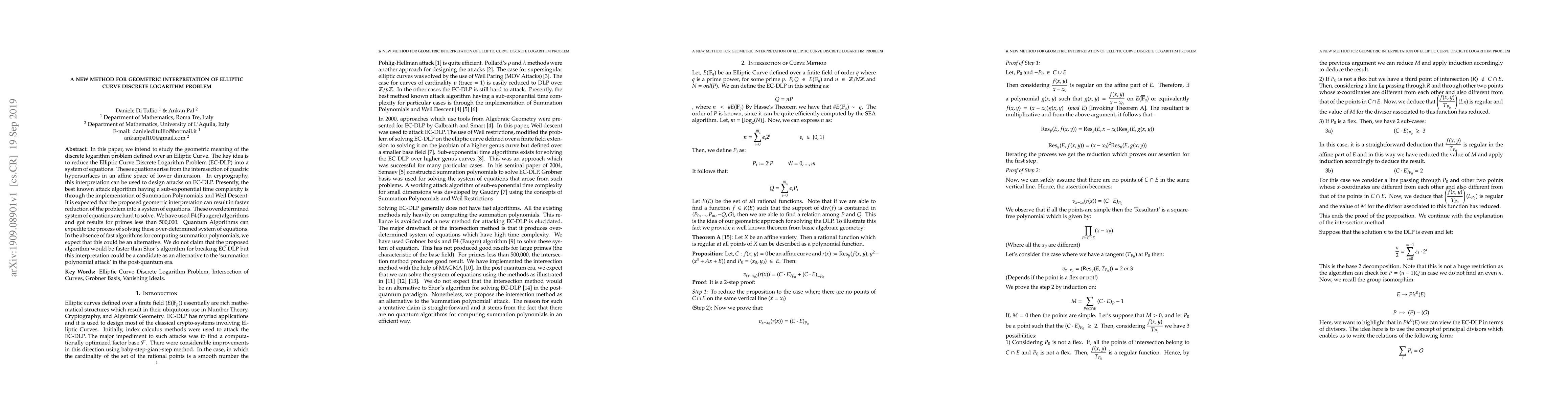 This paper proposes a new geometric method to interpret the Elliptic Curve Discrete Logarithm Problem (EC-DLP) by reducing it to a system of equations from quadric hypersurface intersections. The method aims to provide an alternative to the summation polynomial attack, potentially useful in post-quantum cryptography.