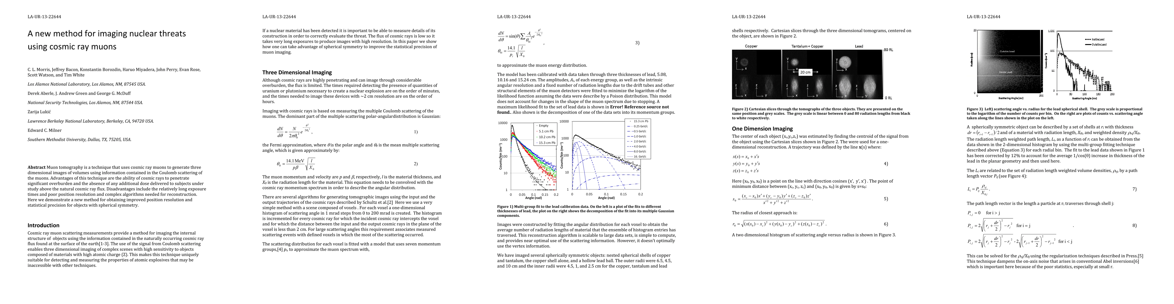 This paper introduces a novel method for muon tomography using cosmic ray muons to enhance imaging resolution and statistical precision for spherical objects, leveraging their ability to penetrate overburden without additional radiation exposure. Despite longer exposure times and complex reconstruction algorithms, the technique promises improved detection of nuclear threats.