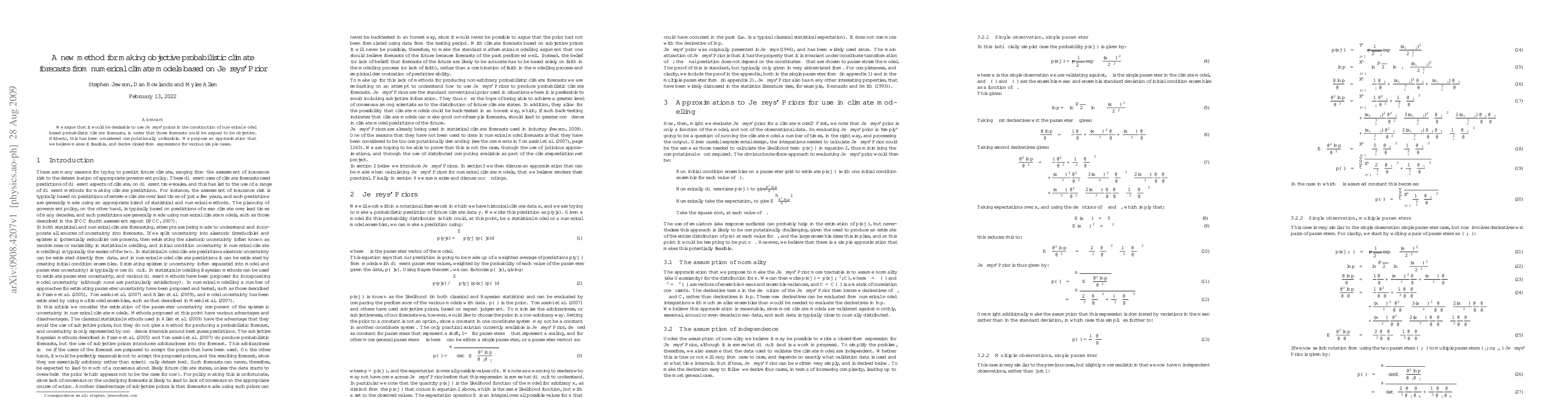 We argue that it would be desirable to use Jeffreys' priors in the construction of numerical model based probabilistic climate forecasts, in order that those forecasts could be argued to be objective. Hitherto, this has been considered computationally unfeasible. We propose an approximation that we believe makes it feasible, and derive closed-form expressions for various simple cases.