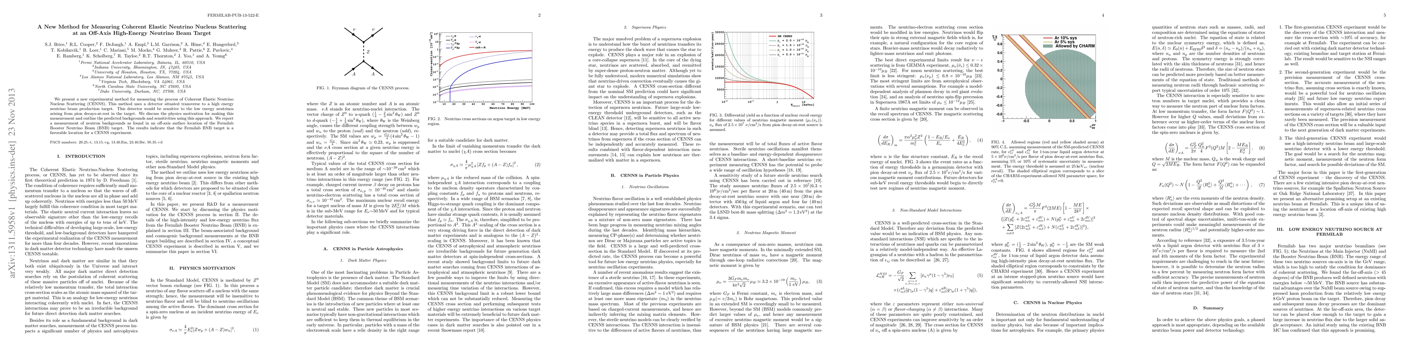 We present a new experimental method for measuring the process of Coherent Elastic Neutrino Nucleus Scattering (CENNS). This method uses a detector situated transverse to a high energy neutrino beam production target. This detector would be sensitive to the low energy neutrinos arising from pion decays-at-rest in the target. We discuss the physics motivation for making this measurement and outline the predicted backgrounds and sensitivities using this approach. We report a measurement of neutron backgrounds as found in an off-axis surface location of the Fermilab Booster Neutrino Beam (BNB) target. The results indicate that the Fermilab BNB target is a favorable location for a CENNS experiment.