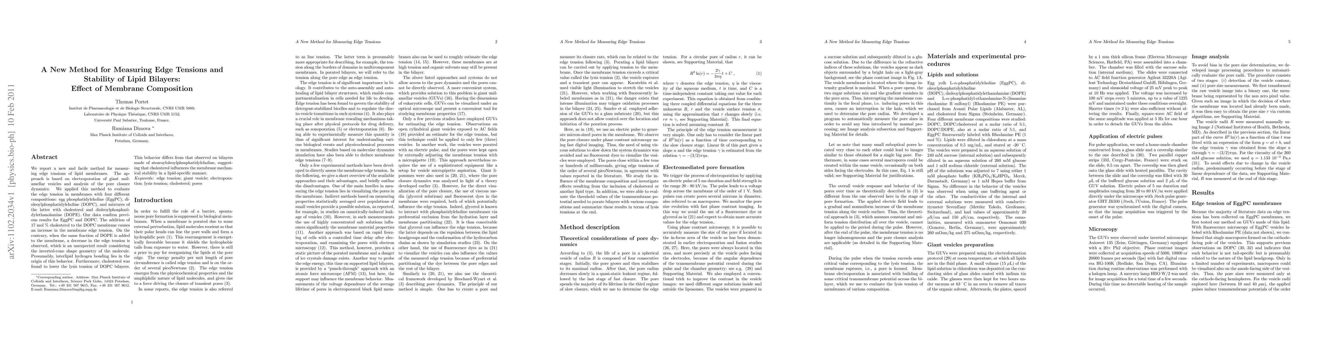 We report a new and facile method for measuring edge tensions of lipid membranes. The approach is based on electroporation of giant unilamellar vesicles and analysis of the pore closure dynamics. We applied this method to evaluate the edge tension in membranes with four different compositions: egg phosphatidylcholine (EggPC), dioleoylphosphatidylcholine (DOPC), and mixtures of the latter with cholesterol and dioleoylphosphatidylethanolamine (DOPE). Our data confirm previous results for EggPC and DOPC. The addition of 17 mol % cholesterol to the DOPC membrane causes an increase in the membrane edge tension. On the contrary, when the same fraction of DOPE is added to the membrane, a decrease in the edge tension is observed, which is an unexpected result considering the inverted-cone shape geometry of the molecule. Presumably, interlipid hydrogen bonding lies in the origin of this behavior. Furthermore, cholesterol was found to lower the lysis tension of DOPC bilayers. This behavior differs from that observed on bilayers made of stearoyloleoylphosphatidylcholine, suggesting that cholesterol influences the membrane mechanical stability in a lipid-specific manner.