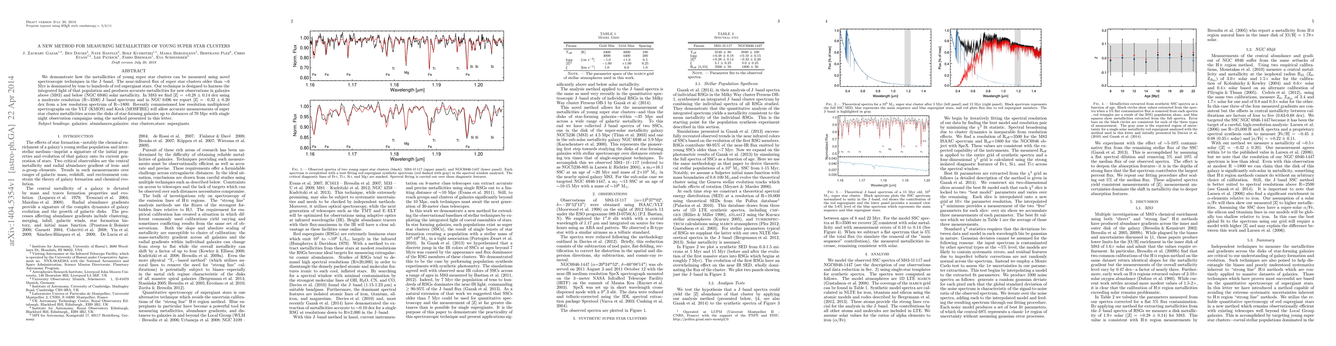 We demonstrate how the metallicities of young super star clusters can be measured using novel spectroscopic techniques in the J-band. The near-infrared flux of super star clusters older than ~6 Myr is dominated by tens to hundreds of red supergiant stars. Our technique is designed to harness the integrated light of that population and produces accurate metallicities for new observations in galaxies above (M83) and below (NGC 6946) solar metallicity. In M83 we find [Z]= +0.28 +/- 0.14 dex using a moderate resolution (R~3500) J-band spectrum and in NGC 6496 we report [Z]= -0.32 +/- 0.20 dex from a low resolution spectrum of R~1800. Recently commissioned low resolution multiplexed spectrographs on the VLT (KMOS) and Keck (MOSFIRE) will allow accurate measurements of super star cluster metallicities across the disks of star-forming galaxies up to distances of 70 Mpc with single night observation campaigns using the method presented in this letter.