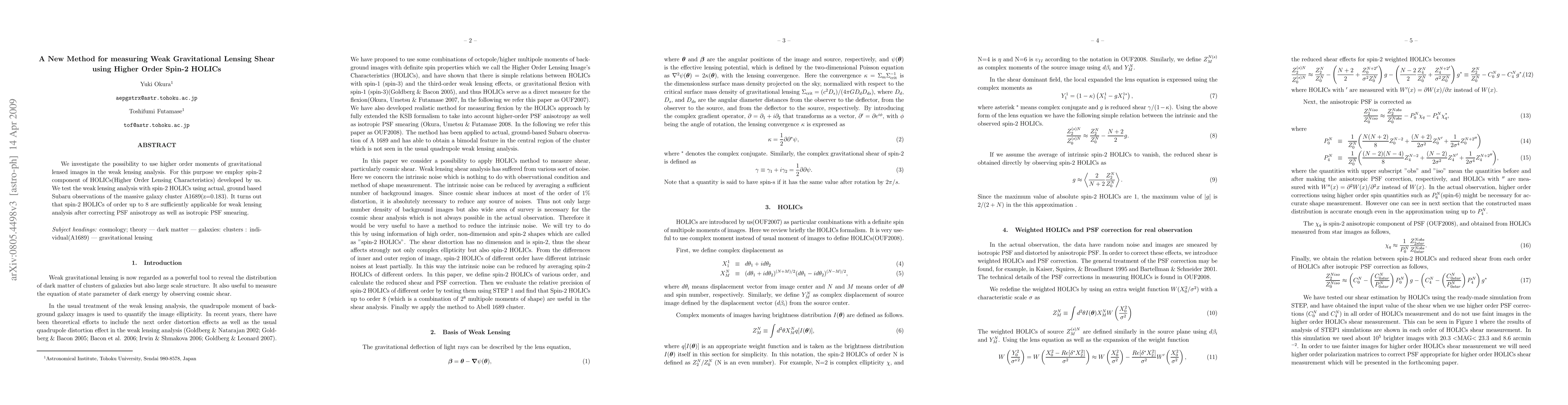 We investigate the possibility to use higher order moments of gravitational lensed images in the weak lensing analysis. For this purpose we employ spin-2 component of HOLICs(Higher Order Lensing Characteristics) developed by us. We test the weak lensing analysis with spin-2 HOLICs using actual, ground based Subaru observations of the massive galaxy cluster A1689(z=0.183). It turns out that spin-2 HOLICs of order up to 8 are sufficiently applicable for weak lensing analysis after correcting PSF anisotropy as well as isotropic PSF smearing.