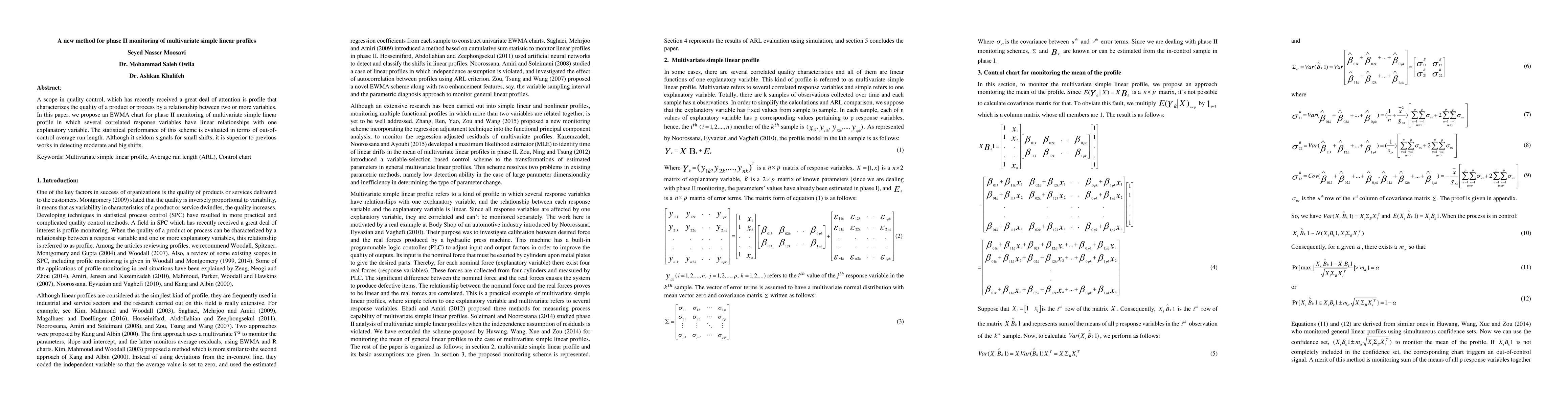 A scope in quality control, which has recently received a great deal of attention is profile that characterizes the quality of a product or process by a relationship between two or more variables. In this paper, we propose an EWMA chart for phase II monitoring of multivariate simple linear profile in which several correlated response variables have linear relationships with one explanatory variable. The statistical performance of this scheme is evaluated in terms of out-of-control average run length. Although it seldom signals for small shifts, it is superior to previous works in detecting moderate and big shifts.