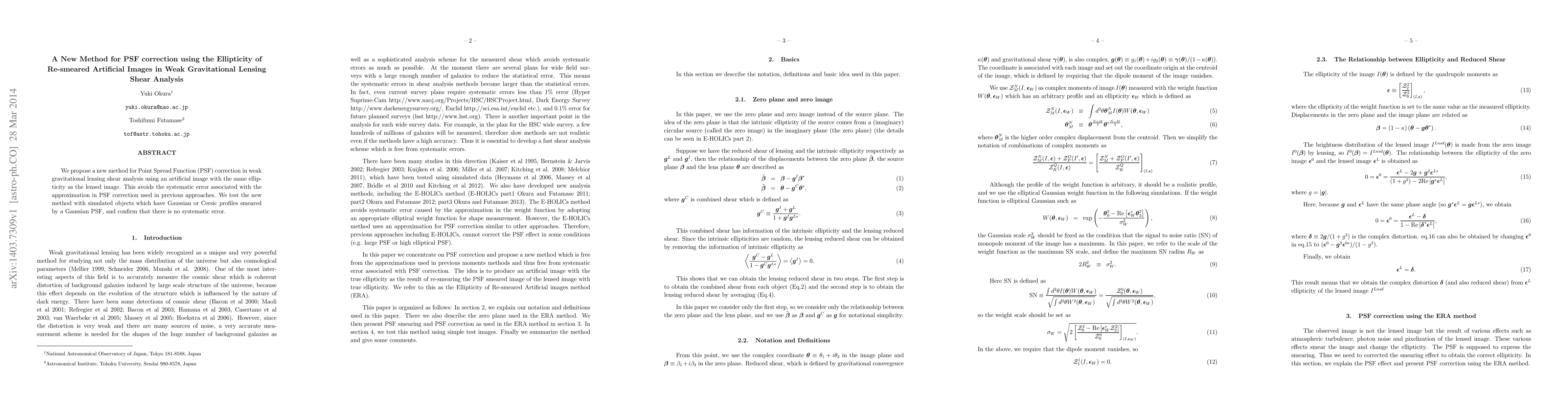 This paper introduces a novel PSF correction method in weak gravitational lensing by employing re-smeared artificial images with matching ellipticity, eliminating systematic errors from previous approximations. Tests on simulated objects confirm the method's effectiveness with no systematic errors.