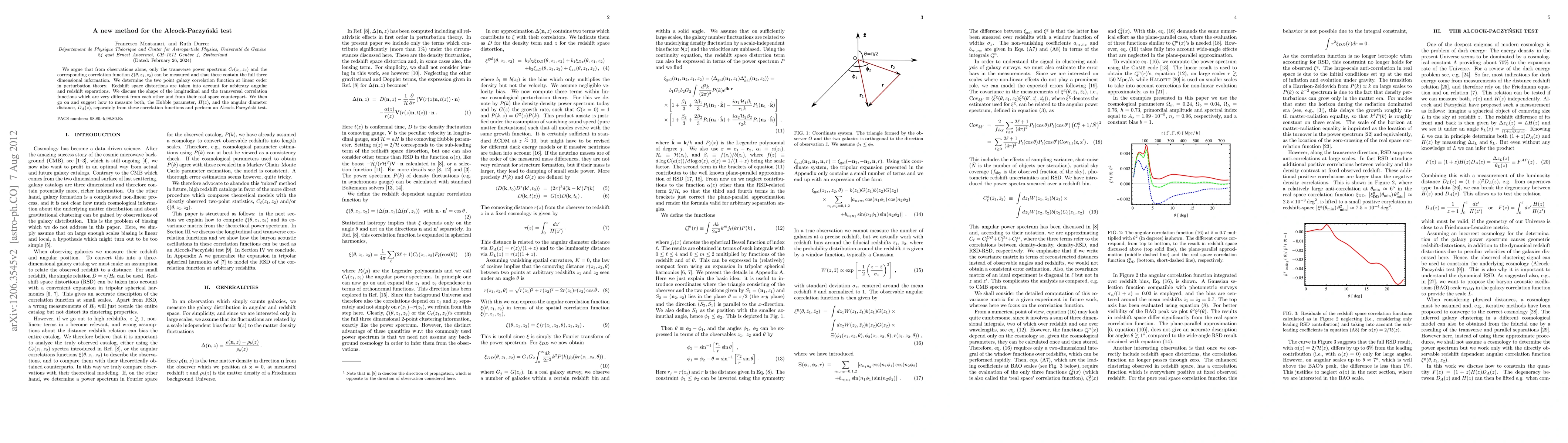 This paper proposes a novel method for the Alcock-Paczynski test using the transverse power spectrum and correlation function, which encapsulates three-dimensional information from observations. It details the measurement of the two-point galaxy correlation function and discusses how to separately determine the Hubble parameter and angular diameter distance to perform the test.