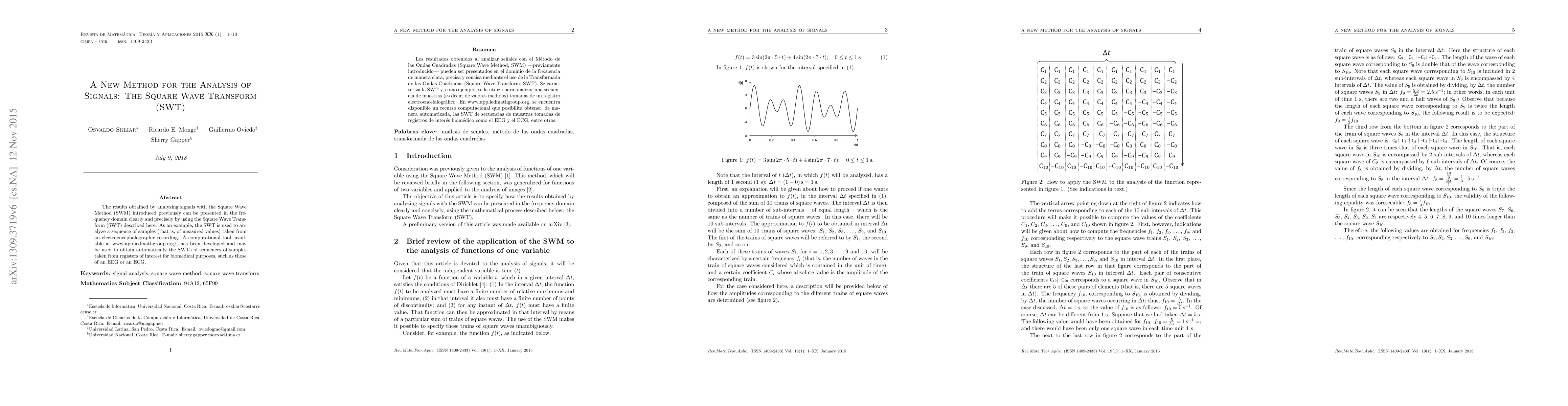 The results obtained by analyzing signals with the Square Wave Method (SWM) introduced previously can be presented in the frequency domain clearly and precisely by using the Square Wave Transform (SWT) described here. As an example, the SWT is used to analyze a sequence of samples (that is, of measured values) taken from an electroencephalographic recording.
