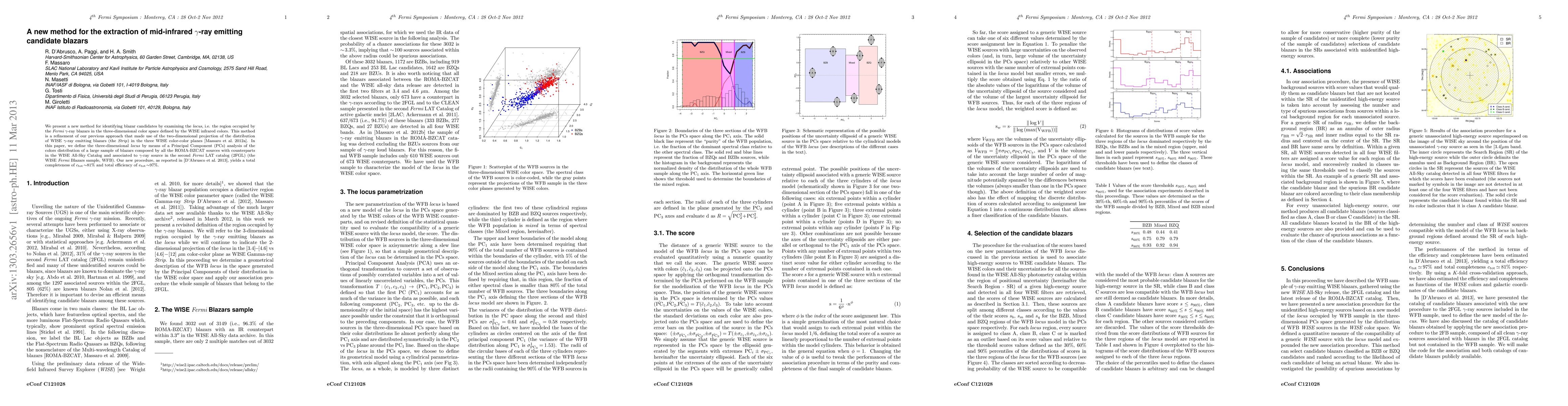 We present a new method for identifying blazar candidates by examining the locus, i.e. the region occupied by the Fermi gamma-ray blazars in the three-dimensional color space defined by the WISE infrared colors. This method is a refinement of our previous approach that made used of the two-dimensional projection of the the distribution of WISE gamma-ray emitting blazars (the Strip) in the three WISE color-color planes. In this paper, we define the three-dimensional locus by means of a Principal Component analysis of the the colors distribution of a large sample of blazars composed by all the ROMA-BZCAT sources with counterparts in the WISE All-Sky Catalog and associated to a gamma-ray source in the second Fermi LAT catalog (2FGL) (the WISE Fermi Blazars sample, WFB). Our new procedure, as reported in [D'Abrusco et al. 2013], yields a total completeness of c=81% and total efficiency of e=97%.
