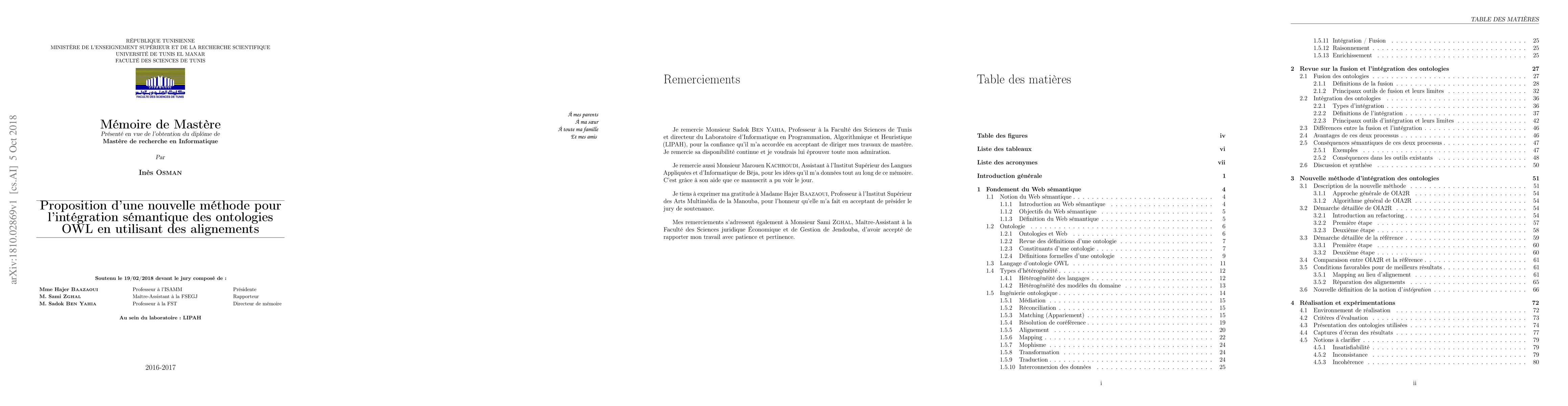 This work is done as part of a master's thesis project. The goal is to integrate two or more ontologies (of the same or close domains) in a new consistent and coherent OWL ontology to insure semantic interoperability between them. To do this, we have chosen to create a bridge ontology that includes all source ontologies and their bridging axioms in a customized way. In addition, we introduced a new criterion for obtaining an ontology of better quality (having the minimum of semantic/logical conflicts). We have also proposed new terminology and definitions that clarify the unclear and misplaced "integration" and "merging" notions that are randomly used in state-of-the-art works. Finally, we tested and evaluated our OIA2R tool using ontologies and reference alignments of the OAEI campaign. It turned out that it is generic, efficient and powerful enough.