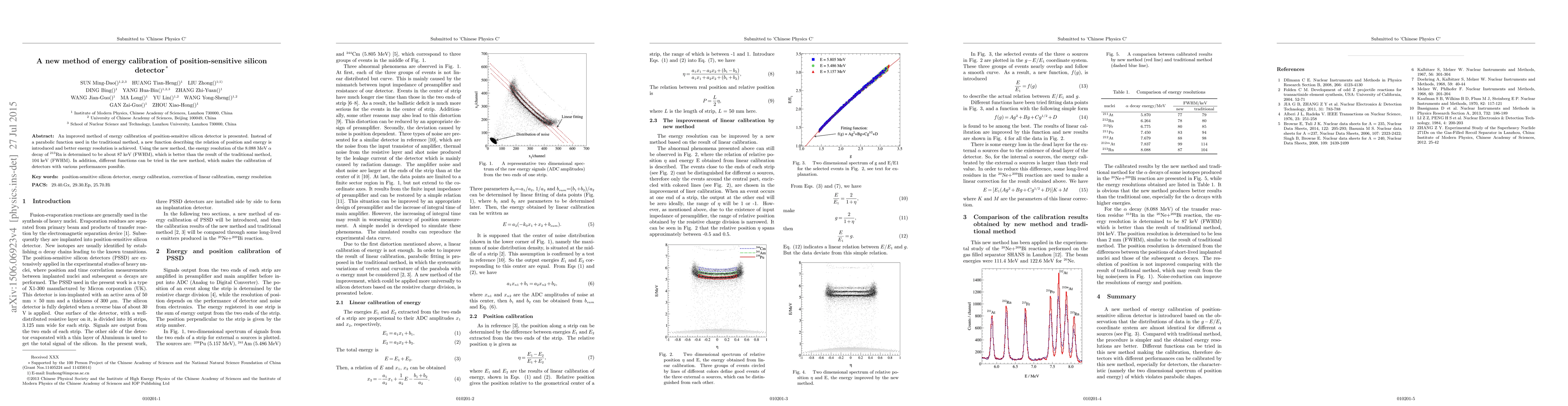 This paper introduces a novel method for calibrating the energy of position-sensitive silicon detectors, using a new function instead of the traditional parabolic model, achieving better energy resolution. The new method improves the energy resolution for 8.088 MeV alpha decay of 213Rn to 87 keV (FWHM) compared to 104 keV (FWHM) using the traditional method.