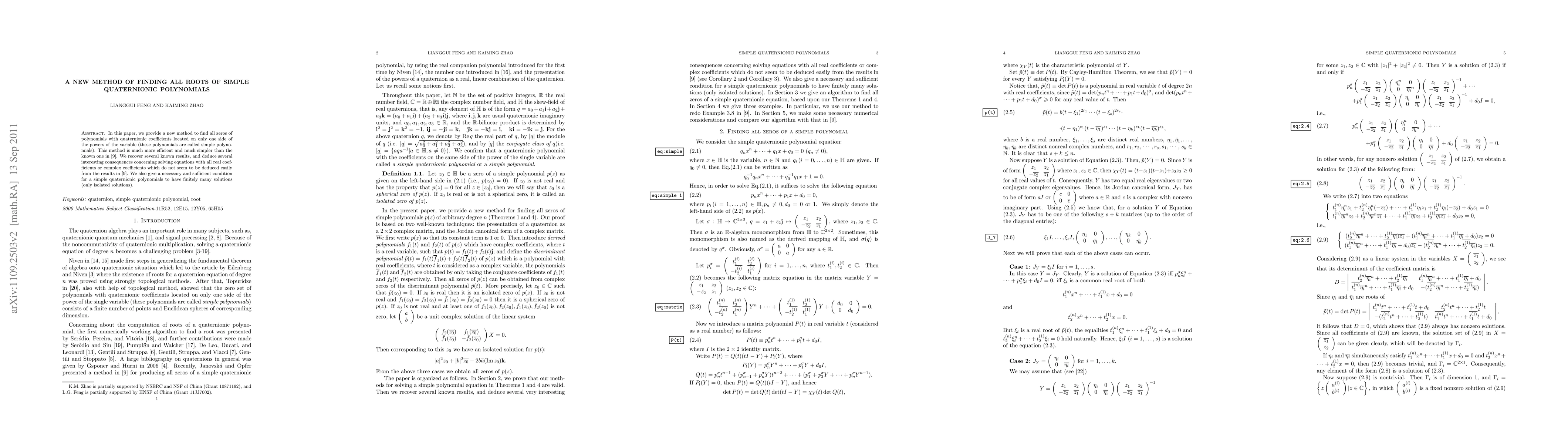 Researchers have developed a new method to efficiently find all zeros of simple quaternionic polynomials, which can aid in solving equations with real or complex coefficients.