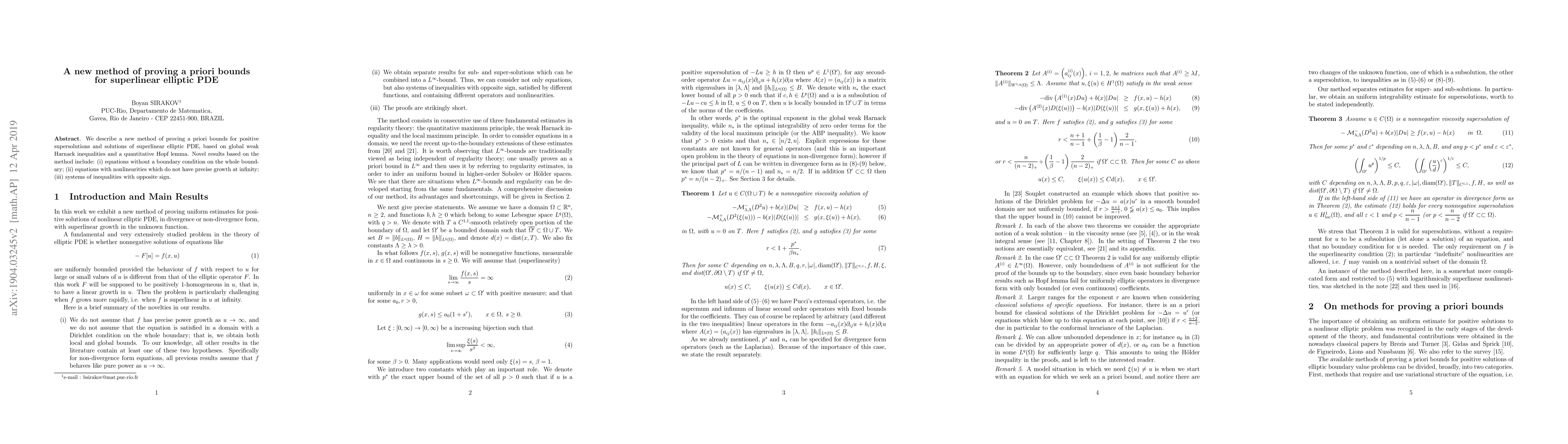 We describe a new method of proving a priori bounds for positive supersolutions and solutions of superlinear elliptic PDE, based on global weak Harnack inequalities and a quantitative Hopf lemma. Novel results based on the method include: (i) equations without a boundary condition on the whole boundary; (ii) equations with nonlinearities which do not have precise growth at infinity; (iii) systems of inequalities with opposite sign.