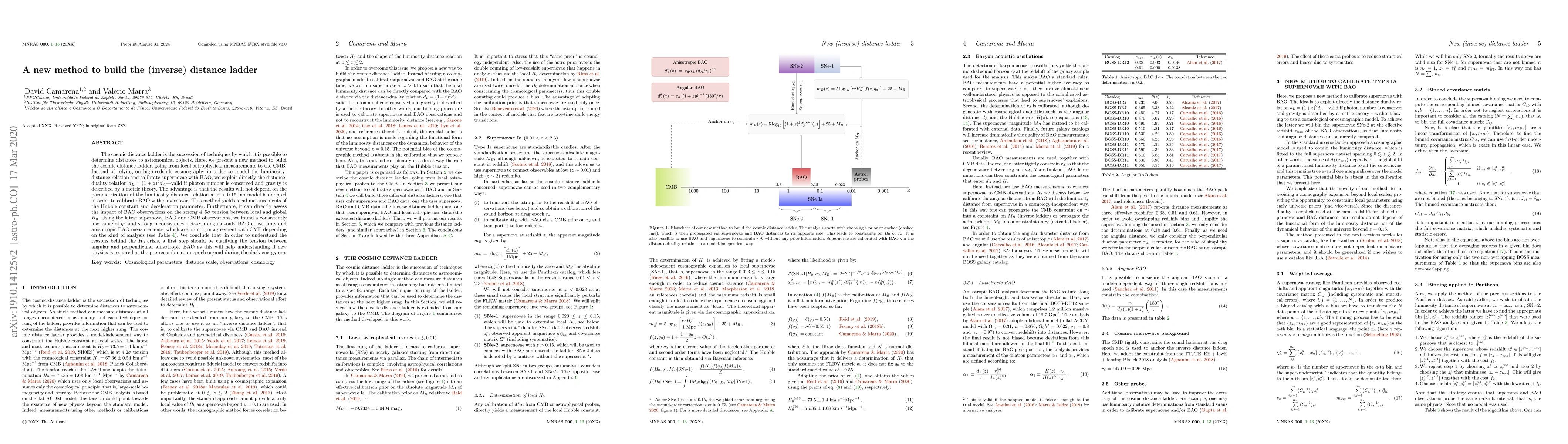 The cosmic distance ladder is the succession of techniques by which it is possible to determine distances to astronomical objects. Here, we present a new method to build the cosmic distance ladder, going from local astrophysical measurements to the CMB. Instead of relying on high-redshift cosmography in order to model the luminosity-distance relation and calibrate supernovae with BAO, we exploit directly the distance-duality relation $d_L = (1+z)^2 d_A$---valid if photon number is conserved and gravity is described by a metric theory. The advantage is that the results will not depend on the parametrization of the luminosity-distance relation at $z>0.15$: no model is adopted in order to calibrate BAO with supernovae. This method yields local measurements of the Hubble constant and deceleration parameter. Furthermore, it can directly assess the impact of BAO observations on the strong 4--5$\sigma$ tension between local and global $H_0$. Using the latest supernova, BAO and CMB observations, we found a consistently low value of $q_0$ and strong inconsistency between angular-only BAO constraints and anisotropic BAO measurements, which are, or not, in agreement with CMB depending on the kind of analysis (see Table~$4$). We conclude that, in order to understand the reasons behind the $H_0$ crisis, a first step should be clarifying the tension between angular and perpendicular anisotropic BAO as this will help understanding if new physics is required at the pre-recombination epoch or/and during the dark energy era.