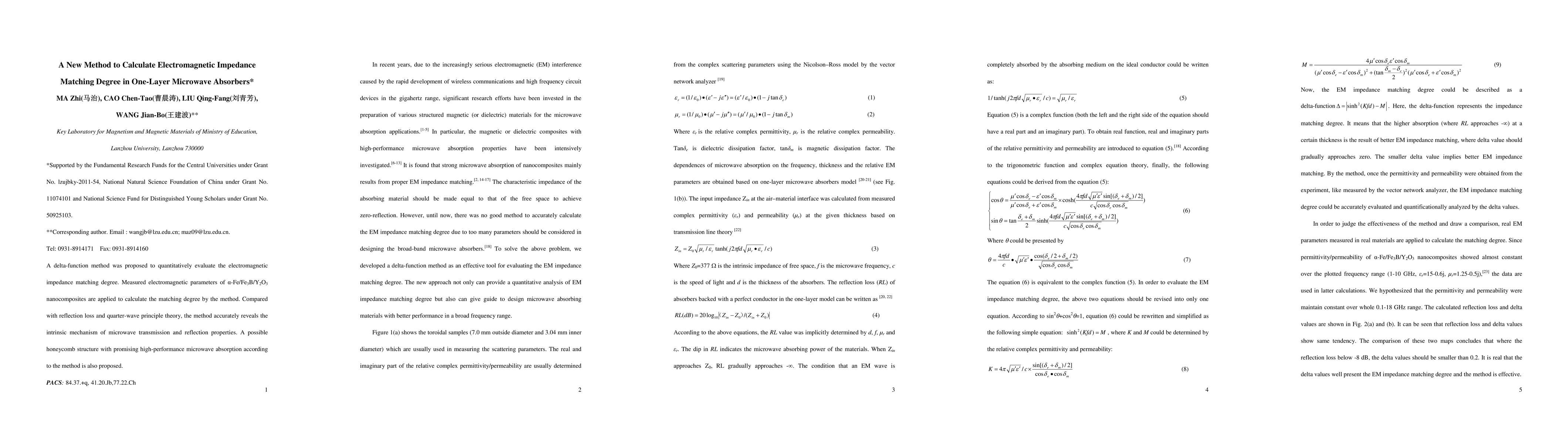 This paper introduces a delta-function method for evaluating electromagnetic impedance matching in one-layer microwave absorbers, using {\alpha}-Fe/Fe3B/Y2O3 nanocomposites. The method provides accurate insights into microwave transmission and reflection properties, surpassing traditional reflection loss and quarter-wave principles, and suggests a honeycomb structure for enhanced microwave absorption.