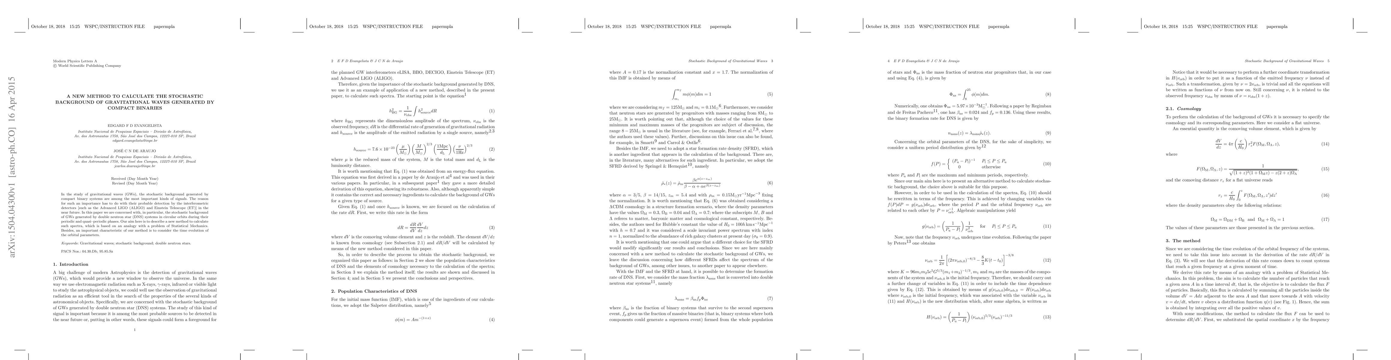 In the study of gravitational waves (GWs), the stochastic background generated by compact binary systems are among the most important kinds of signals. The reason for such an importance has to do with their probable detection by the interferometric detectors [such as the Advanced LIGO (ALIGO) and Einstein Telescope (ET)] in the near future. In this paper we are concerned with, in particular, the stochastic background of GWs generated by double neutron star (DNS) systems in circular orbits during their periodic and quasi--periodic phases. Our aim here is to describe a new method to calculate such spectra, which is based on an analogy with a problem of Statistical Mechanics. Besides, an important characteristic of our method is to consider the time evolution of the orbital parameters.
