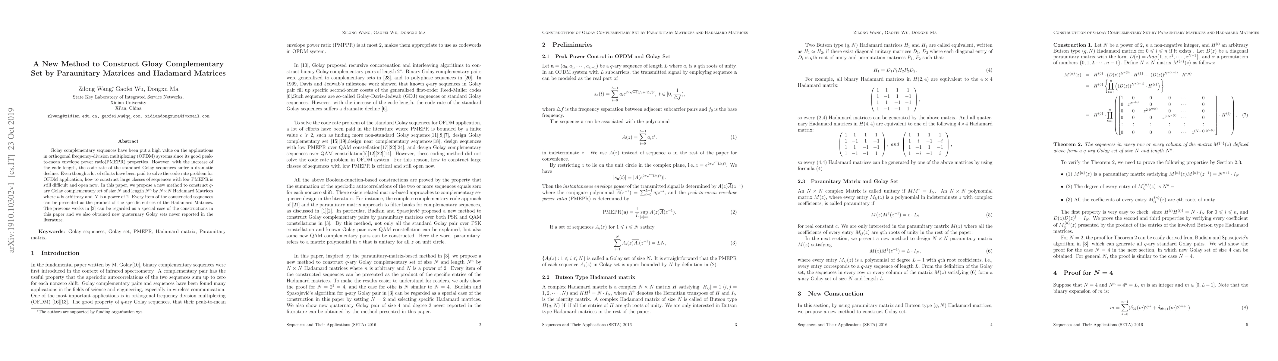 This paper introduces a novel method to construct large $q$-ary Golay complementary sets using $N \times N$ Hadamard matrices, addressing the code rate issue in OFDM systems. The new method generalizes previous work and yields previously unreported quaternary Golay sets.