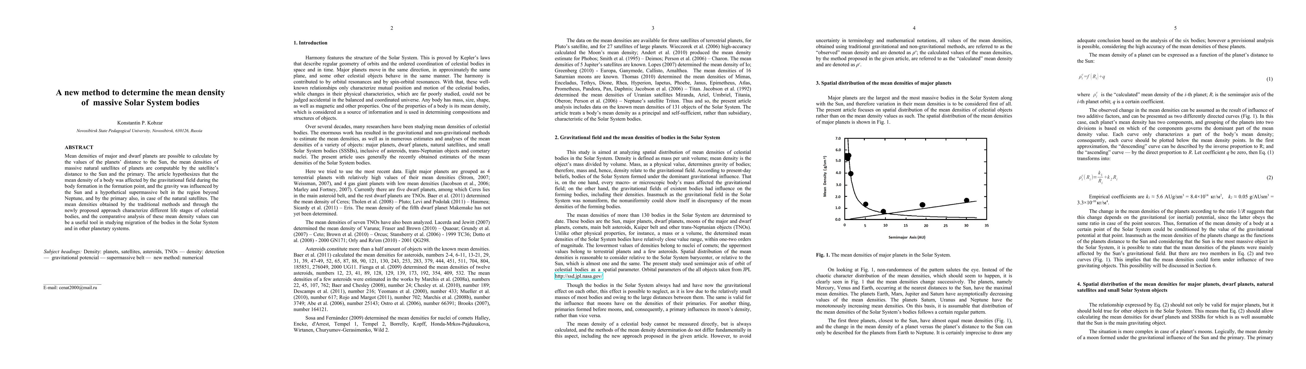 This paper proposes a new method to determine the mean density of Solar System bodies using their distances to the Sun and their primaries, based on the hypothesis that gravitational fields during formation influence density. The method's results, compared to traditional methods, offer insights into the migration and evolution of celestial bodies in the Solar System.