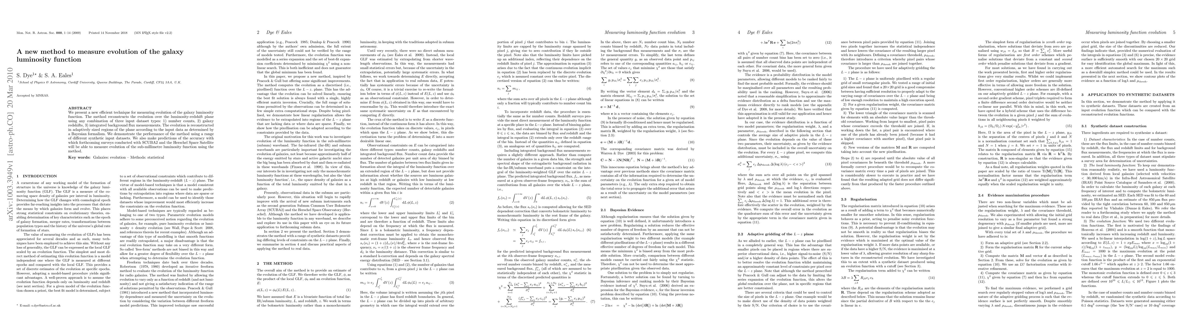 We present a new efficient technique for measuring evolution of the galaxy luminosity function. The method reconstructs the evolution over the luminosity-redshift plane using any combination of three input dataset types: 1) number counts, 2) galaxy redshifts, 3) integrated background flux measurements. The evolution is reconstructed in adaptively sized regions of the plane according to the input data as determined by a Bayesian formalism. We demonstrate the performance of the method using a range of different synthetic input datasets. We also make predictions of the accuracy with which forthcoming surveys conducted with SCUBA2 and the Herschel Space Satellite will be able to measure evolution of the sub-millimetre luminosity function using the method.