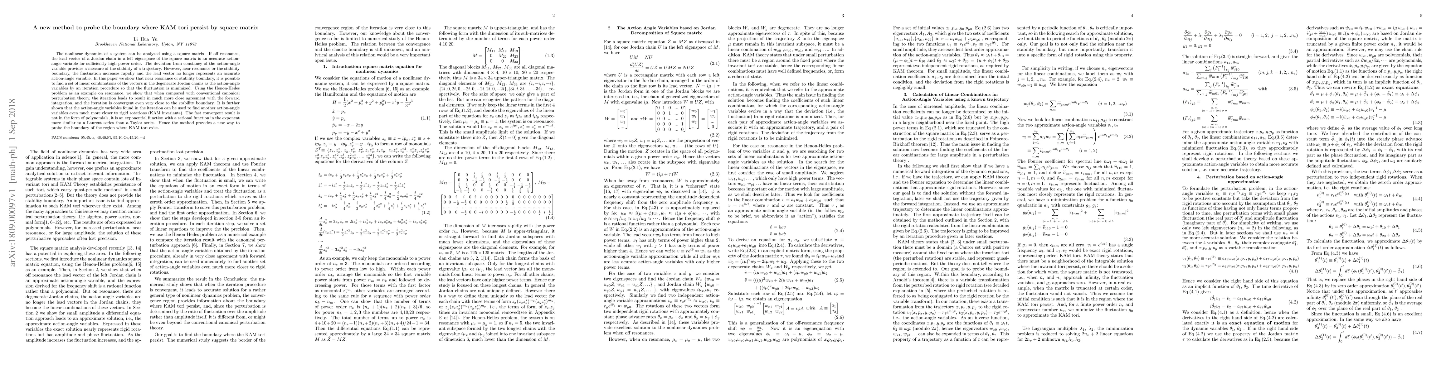 Researchers develop a new method to analyze nonlinear dynamics using square matrices, providing a more accurate way to probe the boundary of KAM tori existence near resonance.