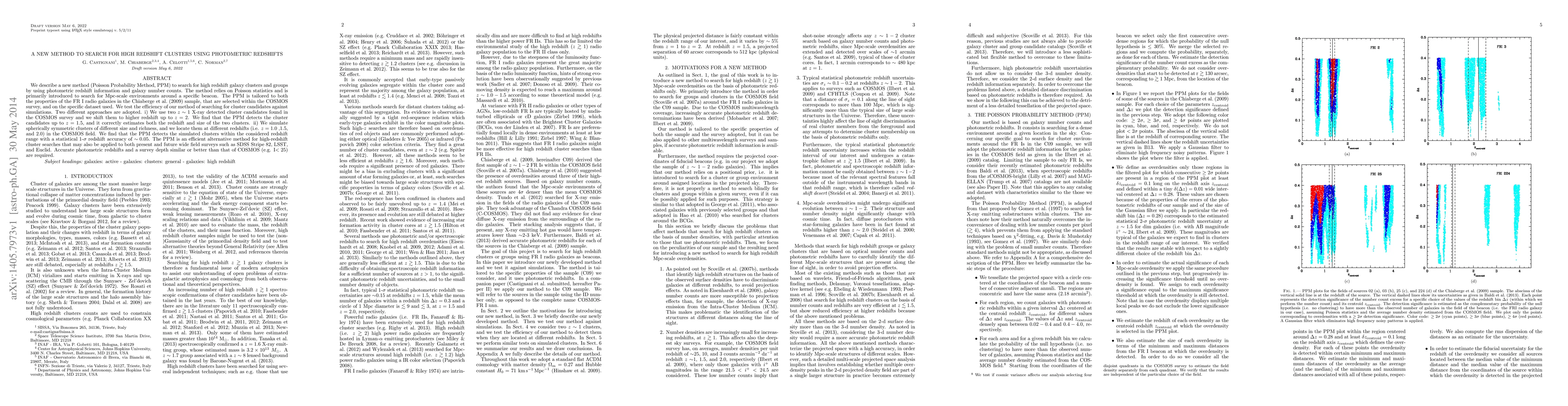 The paper introduces the Poisson Probability Method (PPM) for detecting high redshift galaxy clusters using photometric redshifts and galaxy number counts. The method is tested on real and simulated clusters within the COSMOS survey, demonstrating its effectiveness in identifying clusters up to redshifts of z=1.5 and achieving a 1-sigma redshift accuracy of ~0.05.