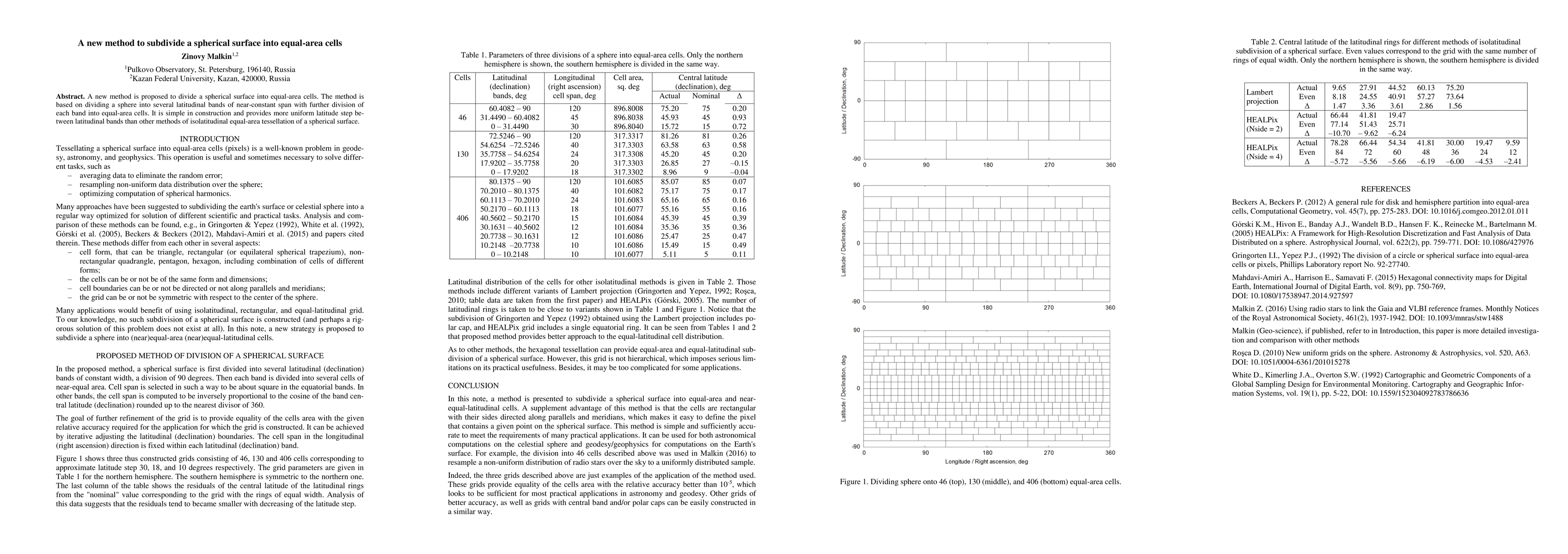 A new method is proposed to divide a spherical surface into equal-area cells. The method is based on dividing a sphere into several latitudinal bands of near-constant span with further division of each band into equal-area cells. It is simple in construction and provides more uniform latitude step be-tween latitudinal bands than other methods of isolatitudinal equal-area tessellation of a spherical surface.