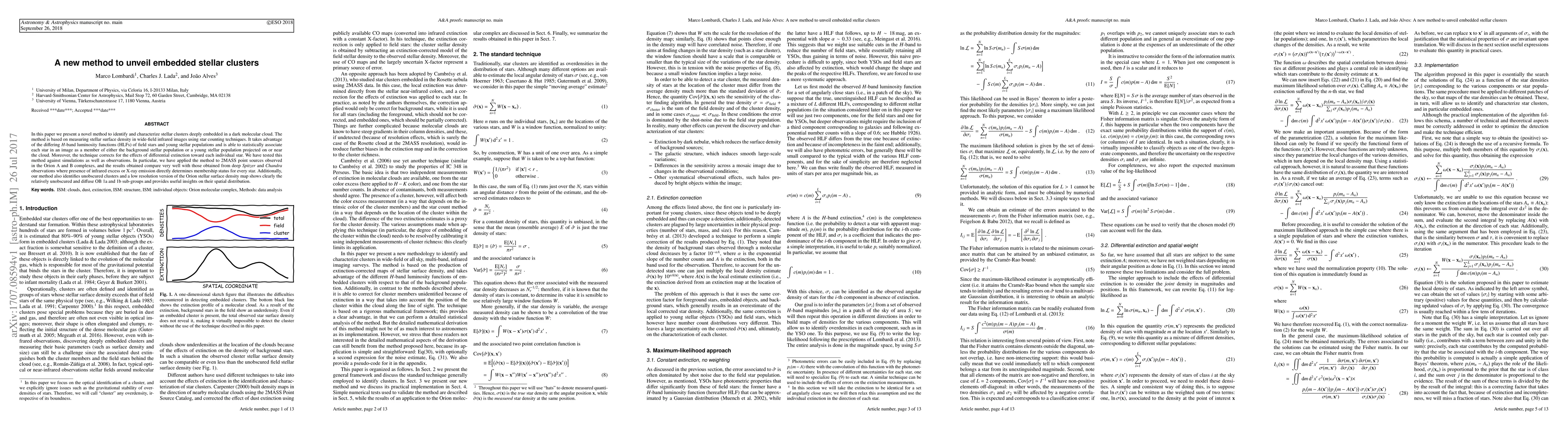 A new method identifies embedded stellar clusters in dark clouds by measuring star surface density in infrared images, correcting for extinction effects, and comparing to H-band luminosity functions of young stars and field populations.