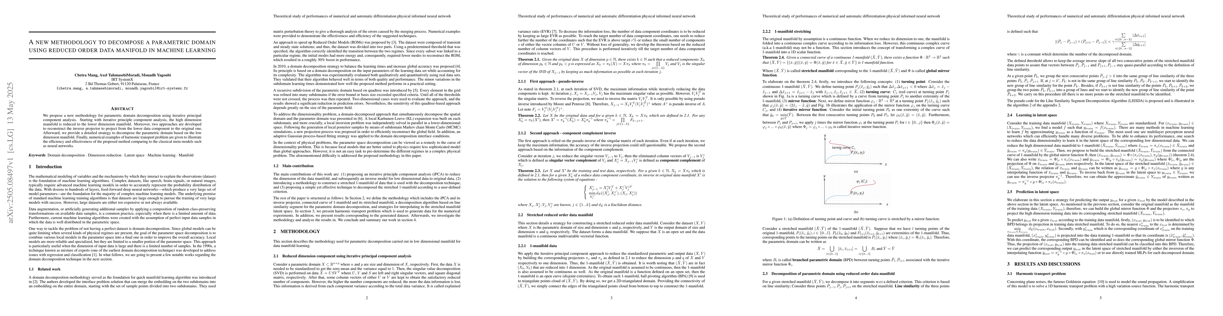 The methodology involves a new approach for parametric domain decomposition using iterative principal component analysis (PCA). It reduces high-dimensional manifolds to lower dimensions and develops strategies to reconstruct inverse projectors for projection between lower and original data components.
