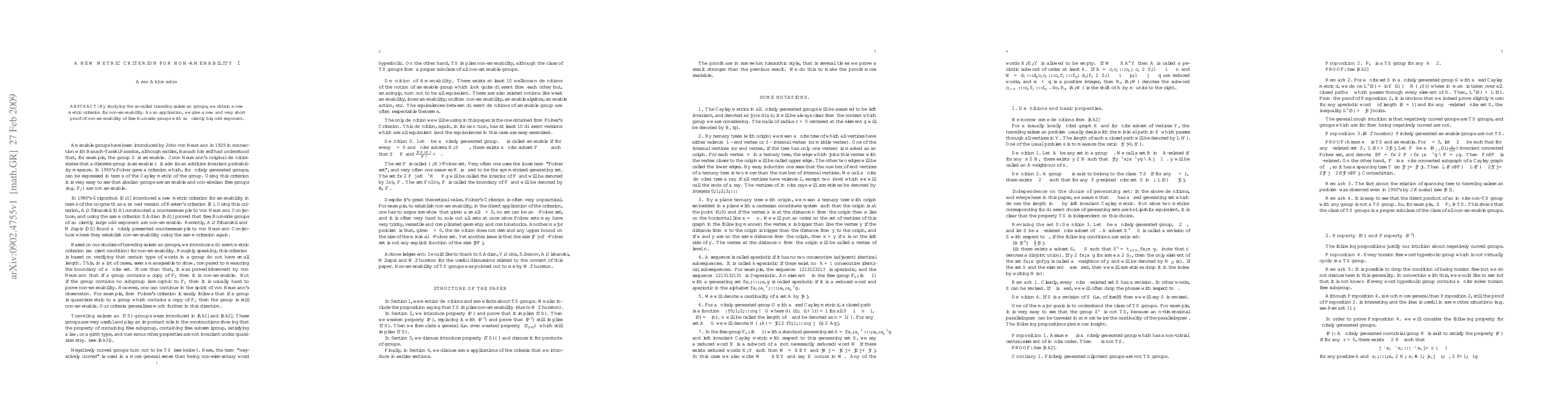 Summary: This paper introduces a new metric criterion for non-amenability based on traveling salesman groups, providing a concise proof for the non-amenability of free Burnside groups with sufficiently large odd exponents.