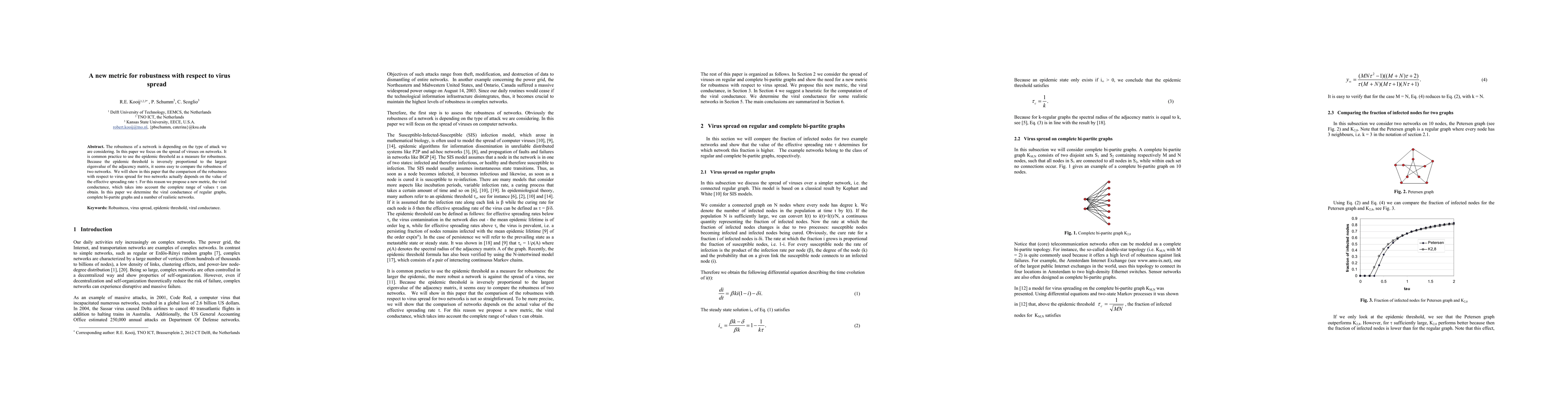 The robustness of a network is depending on the type of attack we are considering. In this paper we focus on the spread of viruses on networks. It is common practice to use the epidemic threshold as a measure for robustness. Because the epidemic threshold is inversely proportional to the largest eigenvalue of the adjacency matrix, it seems easy to compare the robustness of two networks. We will show in this paper that the comparison of the robustness with respect to virus spread for two networks actually depends on the value of the effective spreading rate tau. For this reason we propose a new metric, the viral conductance, which takes into account the complete range of values tau can obtain. In this paper we determine the viral conductance of regular graphs, complete bi-partite graphs and a number of realistic networks.
