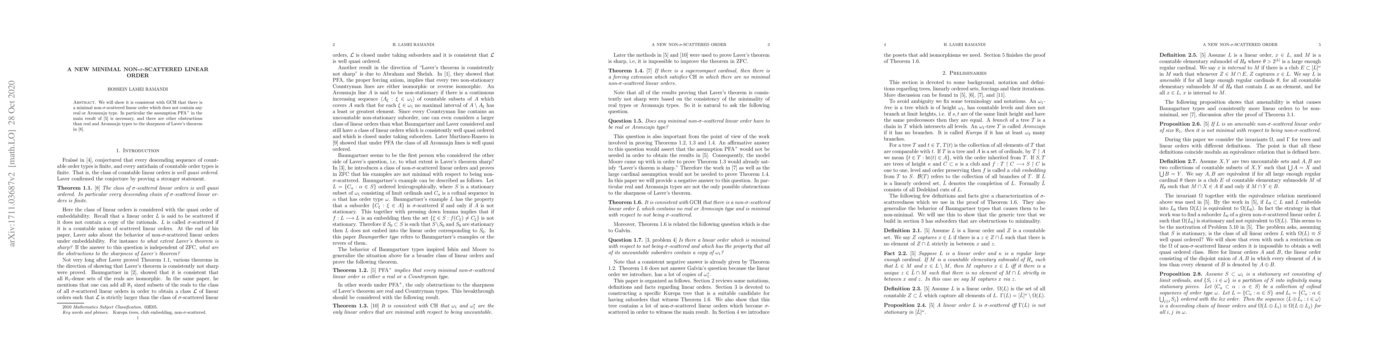 Summary: This paper demonstrates the consistency of the existence, under the Generalized Continuum Hypothesis (GCH), of a minimal non-$\sigma$-scattered linear order that lacks real or Aronszajn properties. The study explores the structure and implications of such an order.