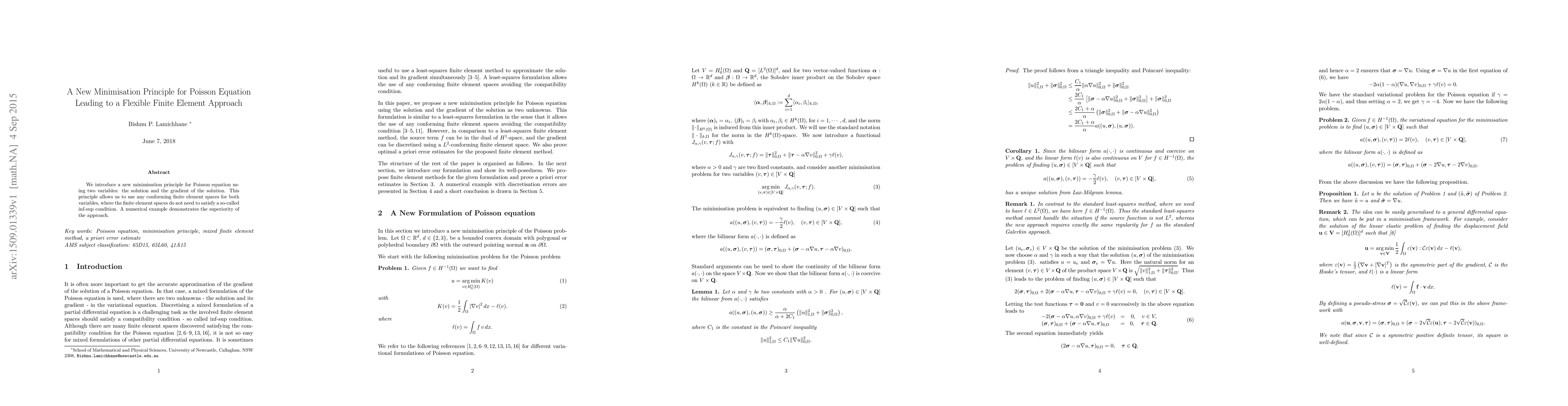We introduce a new minimisation principle for Poisson equation using two variables: the solution and the gradient of the solution. This principle allows us to use any conforming finite element spaces for both variables, where the finite element spaces do not need to satisfy a so-called inf-sup condition. A numerical example demonstrates the superiority of the approach.