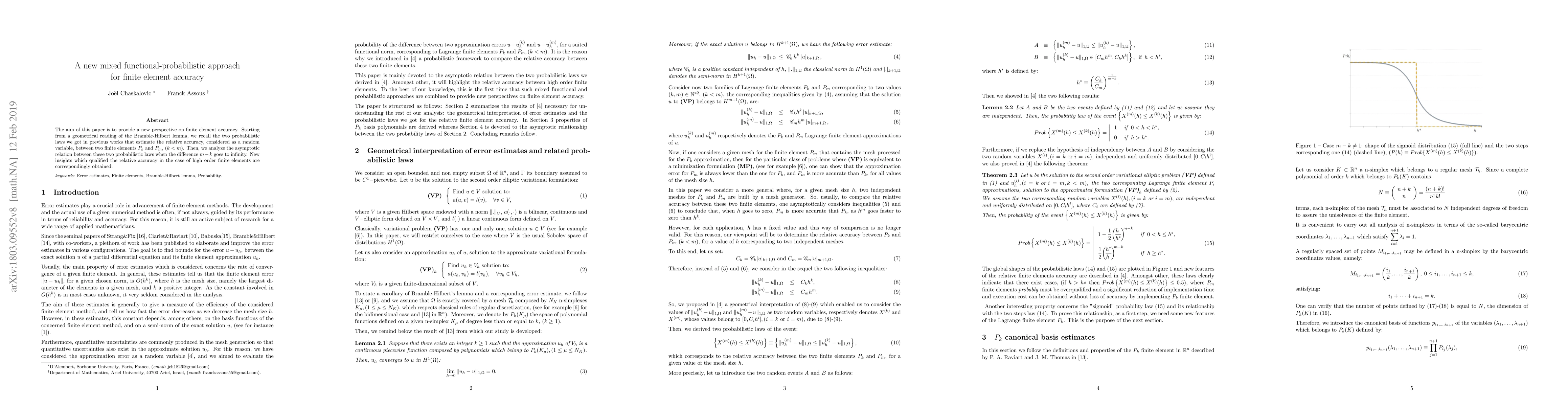 This paper proposes a new approach to estimating finite element accuracy, analyzing the asymptotic behavior of probabilistic laws as the difference in element orders increases. It aims to provide insights into high-order finite elements.