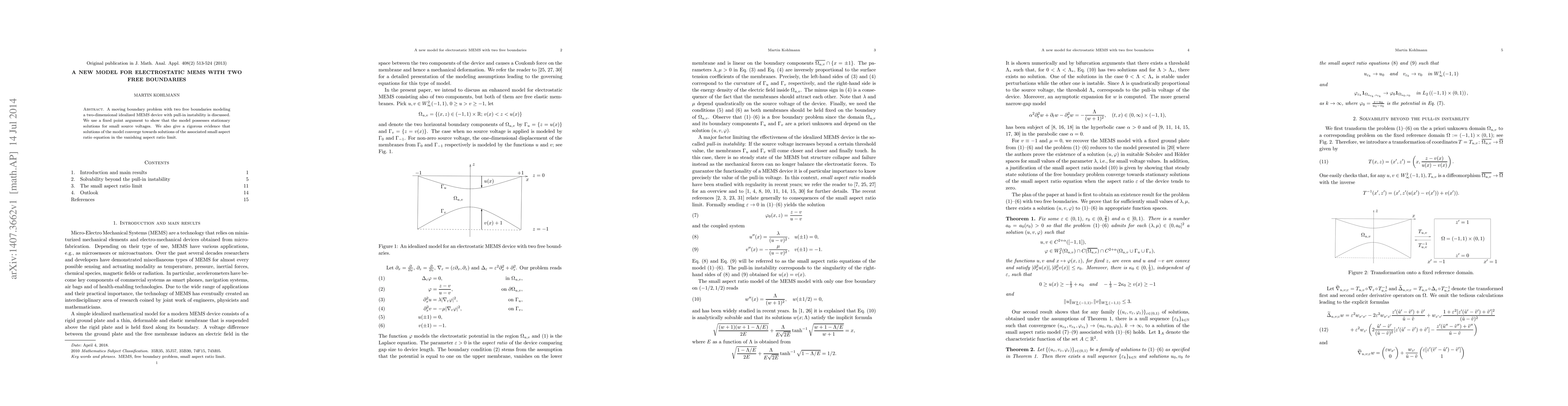 A new model for electrostatic MEMS devices with two free boundaries has been developed, showing stationary solutions exist at low source voltages and converging to smaller aspect ratio equations in the limit.