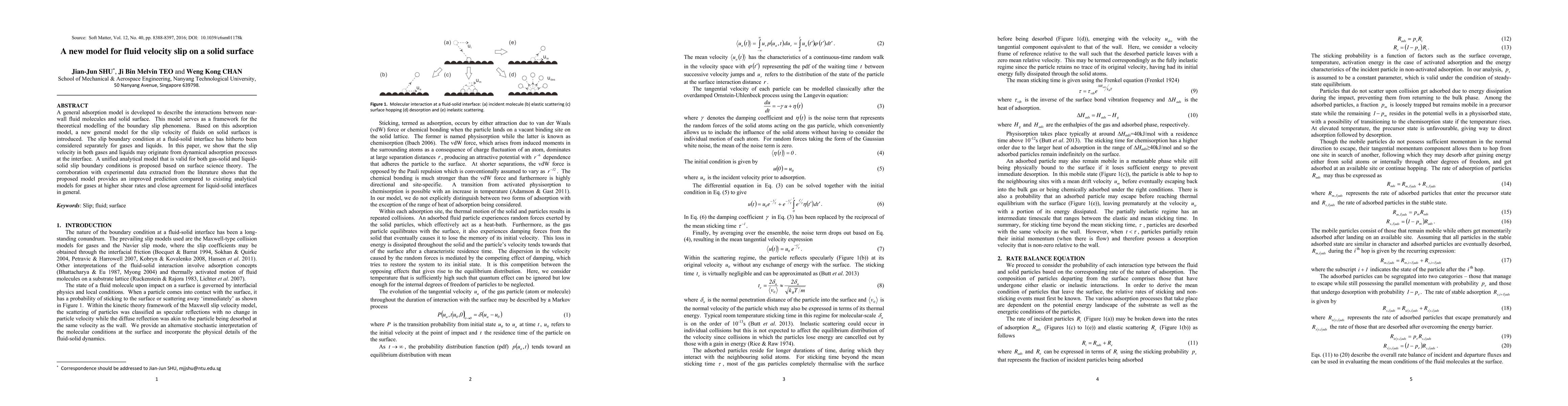 This paper introduces a new unified analytical model for fluid velocity slip on solid surfaces, based on a general adsorption framework that applies to both gases and liquids. The proposed model improves predictions for gas-solid slip at higher shear rates and shows close agreement with experimental data for liquid-solid interfaces.