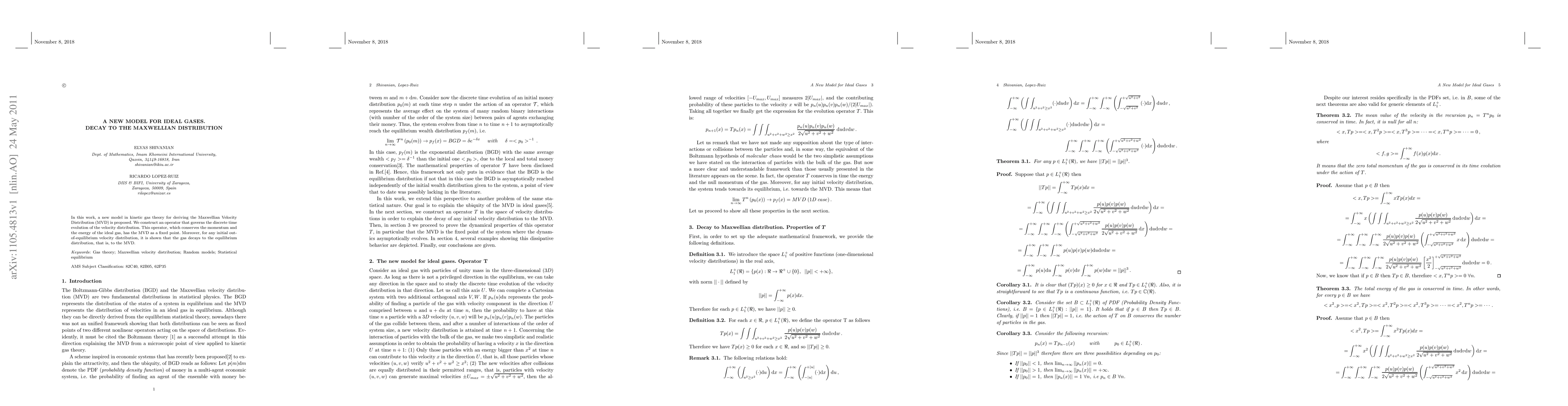 In this work, a new model in kinetic gas theory for deriving the Maxwellian Velocity Distribution (MVD) is proposed. We construct an operator that governs the discrete time evolution of the velocity distribution. This operator, which conserves the momentum and the energy of the ideal gas, has the MVD as a fixed point. Moreover, for any initial out-of-equilibrium velocity distribution, it is shown that the gas decays to the equilibrium distribution, that is, to the MVD.