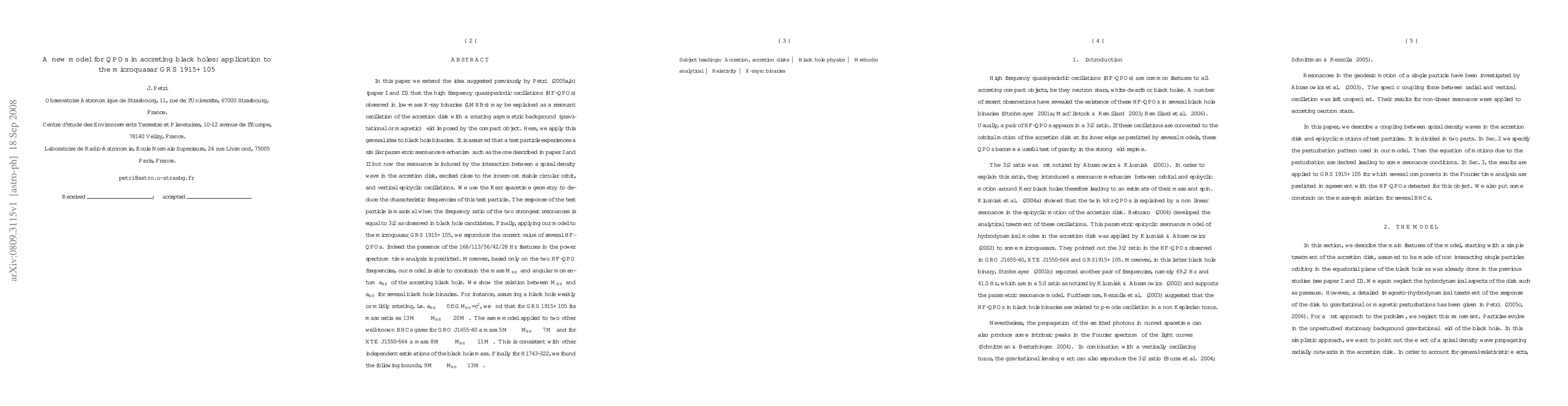 (abridged) In this paper we extend the idea suggested previously by Petri (2005a,b) that the high frequency quasi-periodic oscillations observed in low-mass X-ray binaries may be explained as a resonant oscillation of the accretion disk with a rotating asymmetric background (gravitational or magnetic) field imposed by the compact object. Here, we apply this general idea to black hole binaries. It is assumed that a test particle experiences a similar parametric resonance mechanism such as the one described in paper I and II but now the resonance is induced by the interaction between a spiral density wave in the accretion disk, excited close to the innermost stable circular orbit, and vertical epicyclic oscillations. We use the Kerr spacetime geometry to deduce the characteristic frequencies of this test particle. The response of the test particle is maximal when the frequency ratio of the two strongest resonances is equal to 3:2 as observed in black hole candidates. Finally, applying our model to the microquasar GRS 1915+105, we reproduce the correct value of several HF-QPOs. Indeed the presence of the 168/113/56/42/28 Hz features in the power spectrum time analysis is predicted. Moreover, based only on the two HF-QPO frequencies, our model is able to constrain the mass $M_{\rm BH}$ and angular momentum $a_{\rm BH}$ of the accreting black hole.