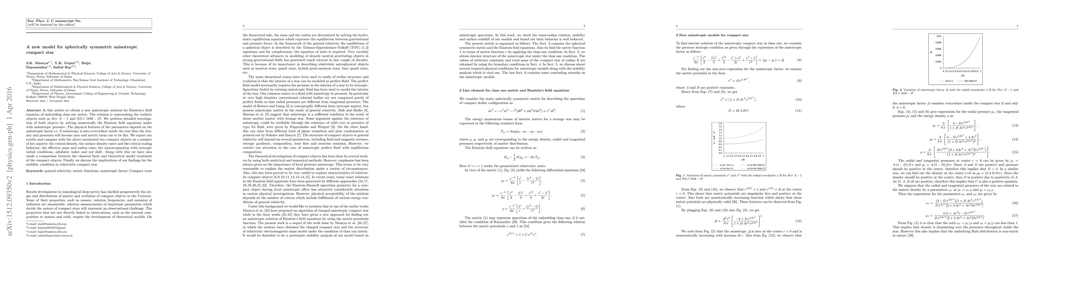 Researchers develop a new model for spherically symmetric anisotropic compact stars, exploring physical features such as density, surface density, and critical scaling behavior in comparison to real-world objects like Her X-1 and RXJ 1856-37.