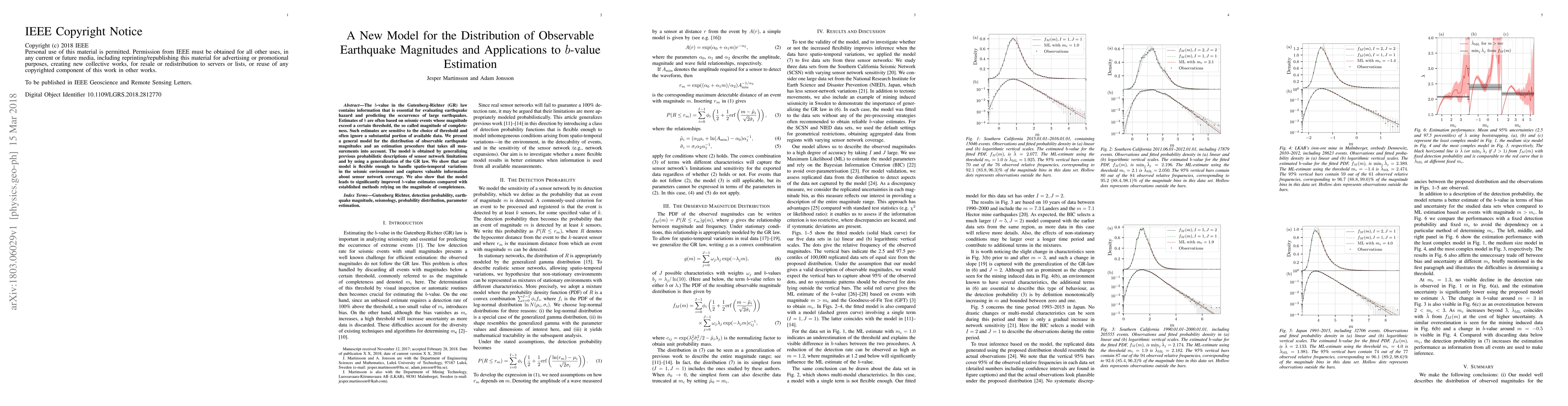 The $b$-value in the Gutenberg-Richter (GR) law contains information that is essential for evaluating earthquake hazard and predicting the occurrence of large earthquakes. Estimates of $b$ are often based on seismic events whose magnitude exceed a certain threshold, the so called magnitude of completeness. Such estimates are sensitive to the choice of threshold and often ignore a substantial portion of available data. We present a general model for the distribution of observable earthquake magnitudes and an estimation procedure that takes all measurements into account. The model is obtained by generalizing previous probabilistic descriptions of sensor network limitations and by using a generalization of the GR law. We show that our model is flexible enough to handle spatio-temporal variations in the seismic environment and captures valuable information about sensor network coverage. We also show that the model leads to significantly improved $b$-value estimates compared with established methods relying on the magnitude of completeness.