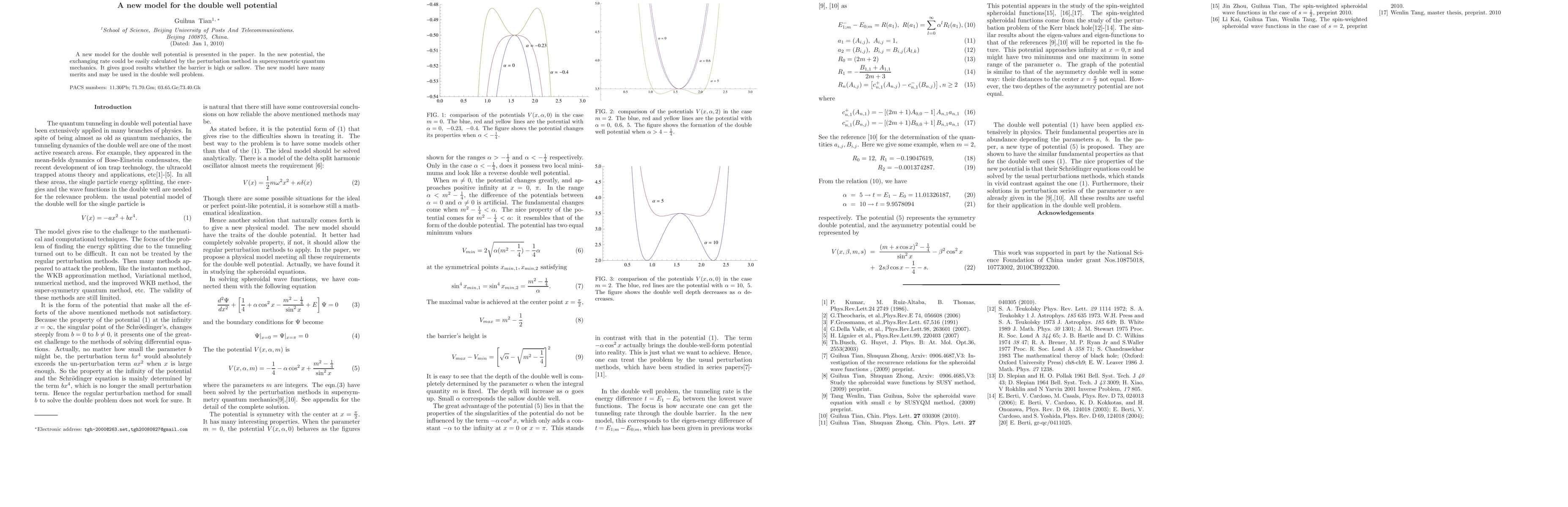 A new model for the double well potential is presented in the paper. In the new potential, the exchanging rate could be easily calculated by the perturbation method in supersymmetric quantum mechanics. It gives good results whether the barrier is high or sallow. The new model have many merits and may be used in the double well problem.