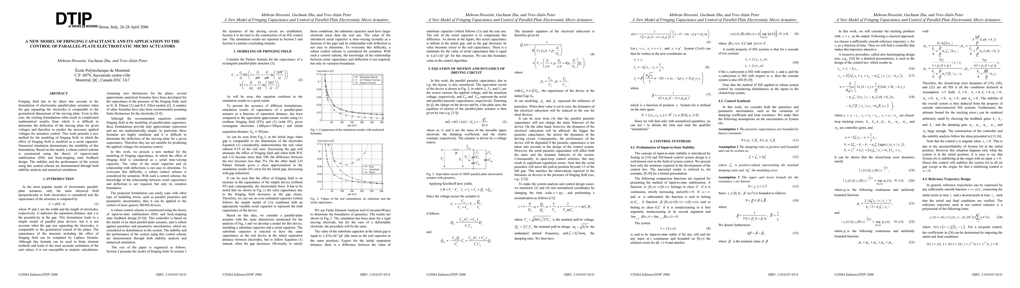 This paper introduces a new model for the fringing capacitance in parallel-plate electrostatic micro actuators, simplifying the mathematical representation and enabling easier control. A robust control scheme based on input-to-state stabilization and back-stepping is developed, demonstrating stability and performance through theoretical analysis and numerical simulations.