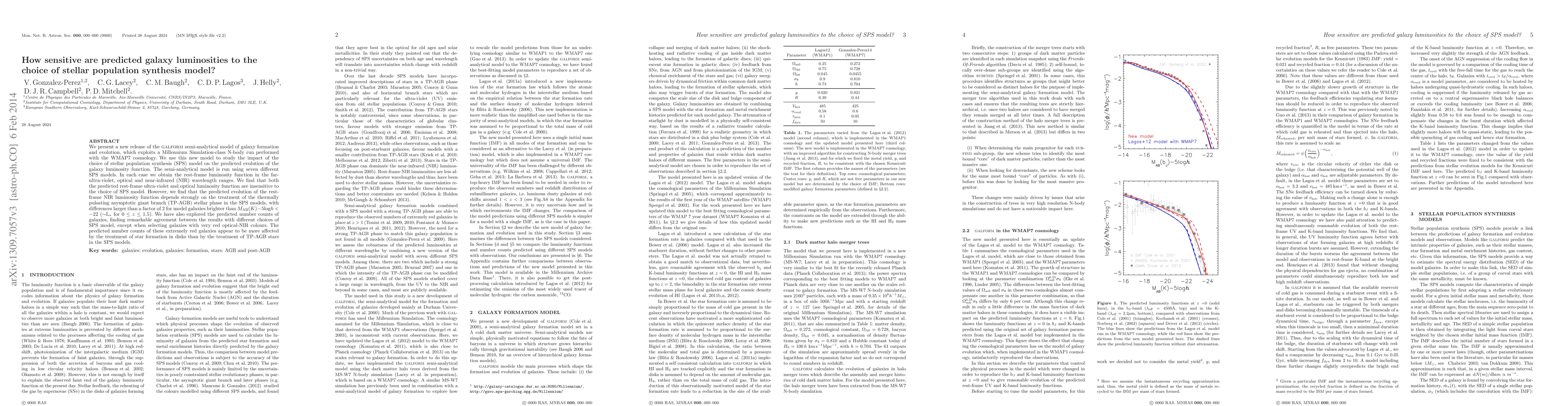 We present a new release of the GALFORM semi-analytical model of galaxy formation and evolution, which exploits a Millennium Simulation-class N-body run performed with the WMAP7 cosmology. We use this new model to study the impact of the choice of stellar population synthesis (SPS) model on the predicted evolution of the galaxy luminosity function. The semi-analytical model is run using seven different SPS models. In each case we obtain the rest-frame luminosity function in the far-ultra-violet, optical and near-infrared (NIR) wavelength ranges. We find that both the predicted rest-frame ultra-violet and optical luminosity function are insensitive to the choice of SPS model. However, we find that the predicted evolution of the rest-frame NIR luminosity function depends strongly on the treatment of the thermally pulsating asymptotic giant branch (TP-AGB) stellar phase in the SPS models, with differences larger than a factor of 2 for model galaxies brighter than $M_{\rm AB}(K)-5$log$h<-22$ ($\sim$L$_*$ for $0\leq z\leq 1.5$). We have also explored the predicted number counts of galaxies, finding remarkable agreement between the results with different choices of SPS model, except when selecting galaxies with very red optical-NIR colours. The predicted number counts of these extremely red galaxies appear to be more affected by the treatment of star formation in disks than by the treatment of TP-AGB stars in the SPS models.