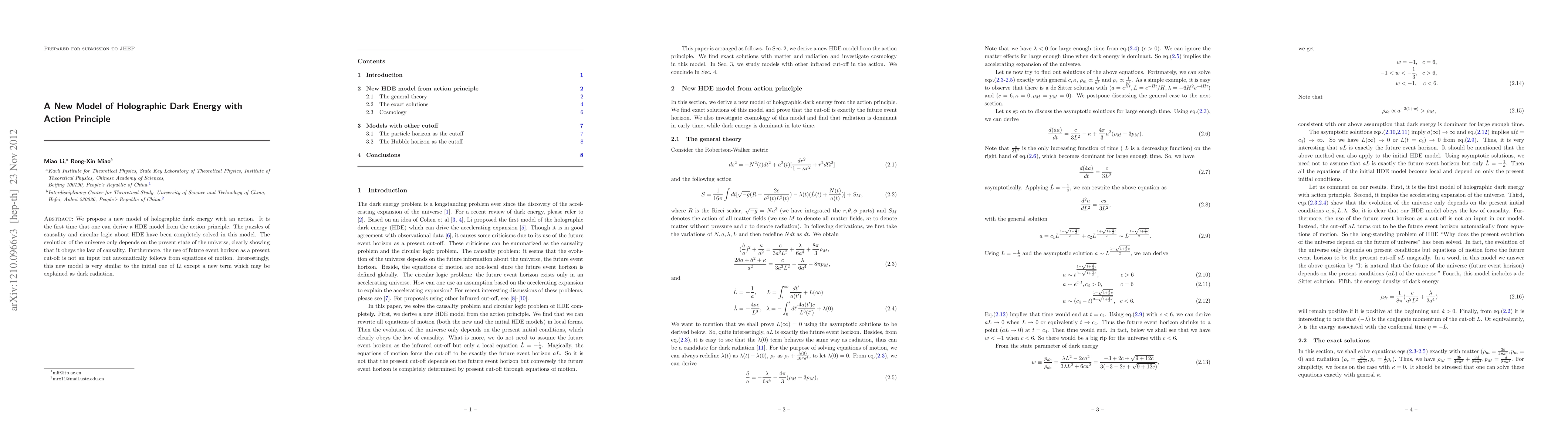 This paper introduces a novel holographic dark energy model derived from an action principle, resolving causality issues and eliminating circular logic. Unlike previous models, the future event horizon naturally emerges from the equations of motion, and a new term resembling dark radiation is introduced.