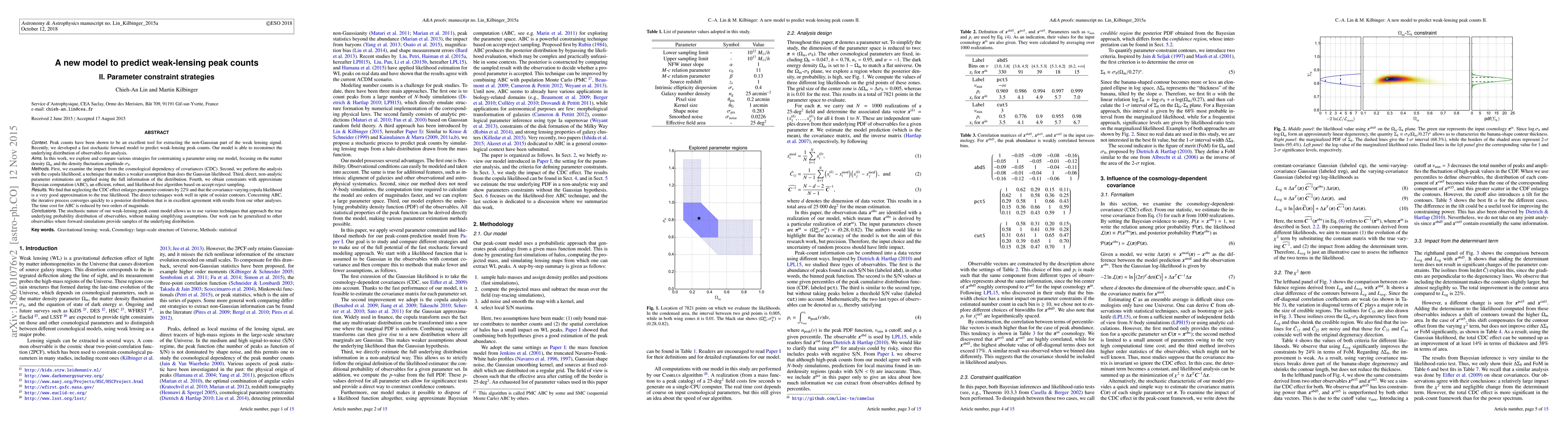 This paper develops a new stochastic forward model to predict weak-lensing peak counts and explores various parameter constraint strategies, including the cosmological dependency of covariances, copula likelihood, direct parameter estimations, and approximate Bayesian computation (ABC). The study finds that neglecting cosmological dependencies enlarges parameter contours by 22%, while ABC provides a highly efficient and accurate alternative to traditional methods.