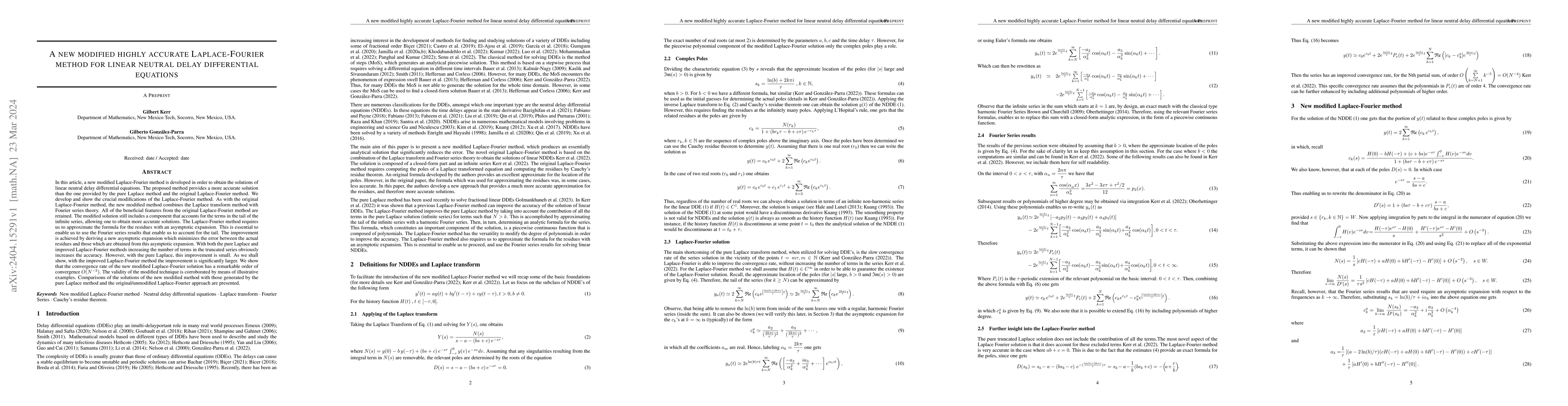 The paper introduces a new modified Laplace-Fourier method for solving linear neutral delay differential equations, offering significant accuracy improvements over the pure Laplace method and the original Laplace-Fourier method. The new method achieves higher accuracy through a refined asymptotic expansion and exhibits a remarkable convergence rate of $O(N^{-3})$.