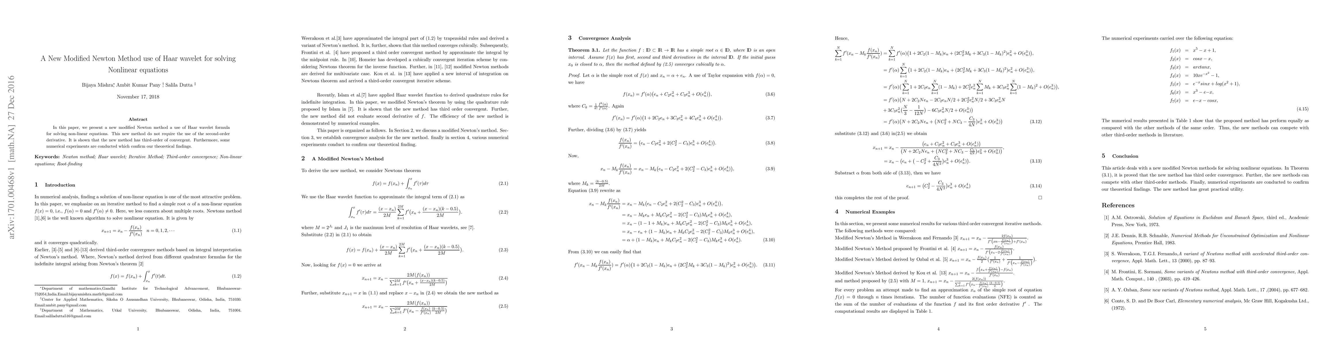 This paper introduces a novel, Haar wavelet-based modification of the Newton method for solving nonlinear equations, eliminating the need for second-order derivatives. The new method demonstrates third-order convergence, as confirmed by numerical experiments.