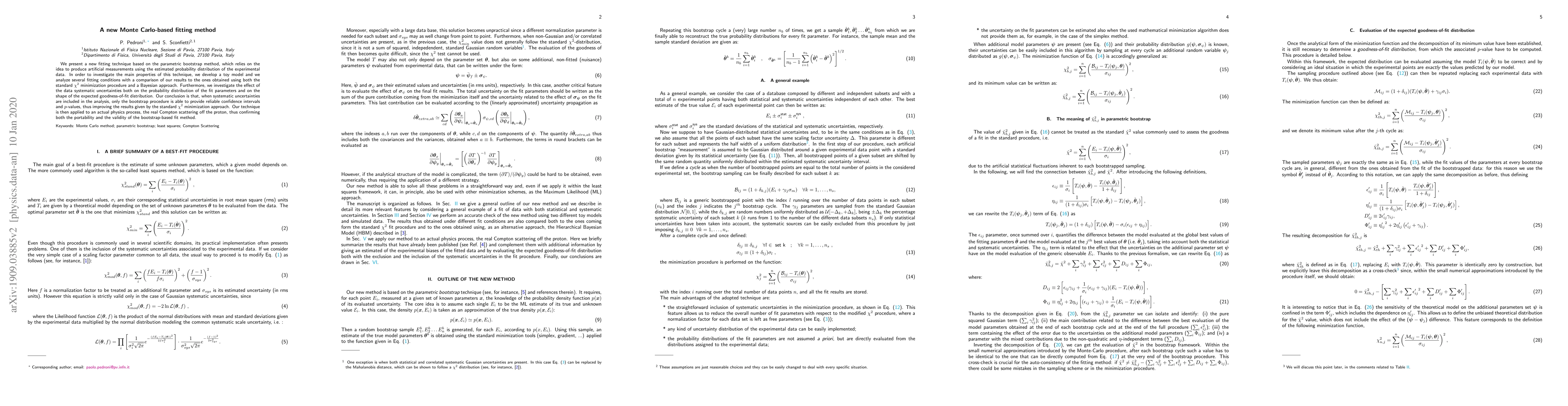 We present a new fitting technique based on the parametric bootstrap method, which relies on the idea to produce artificial measurements using the estimated probability distribution of the experimental data. In order to investigate the main properties of this technique, we develop a toy model and we analyze several fitting conditions with a comparison of our results to the ones obtained using both the standard $\chi^2$ minimization procedure and a Bayesian approach. Furthermore, we investigate the effect of the data systematic uncertainties both on the probability distribution of the fit parameters and on the shape of the expected goodness-of-fit distribution. Our conclusion is that, when systematic uncertainties are included in the analysis, only the bootstrap procedure is able to provide reliable confidence intervals and p-values, thus improving the results given by the standard $\chi^2$ minimization approach. Our technique is then applied to an actual physics process, the real Compton scattering off the proton, thus confirming both the portability and the validity of the bootstrap-based fit method.