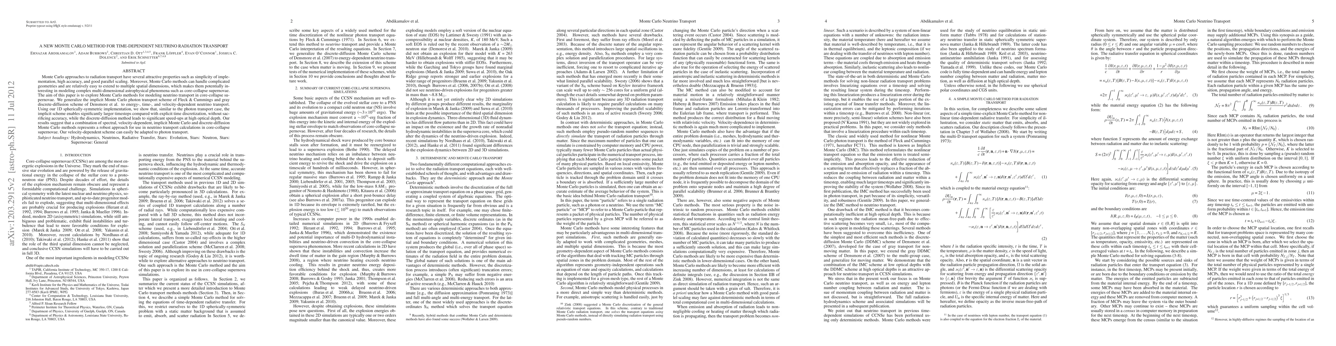 This paper introduces a novel Monte Carlo method for time-dependent neutrino radiation transport in core-collapse supernovae, combining implicit schemes and discrete-diffusion methods for improved accuracy and efficiency. The proposed method enables larger timesteps and significant speed-ups, offering a robust approach for modeling complex astrophysical phenomena.